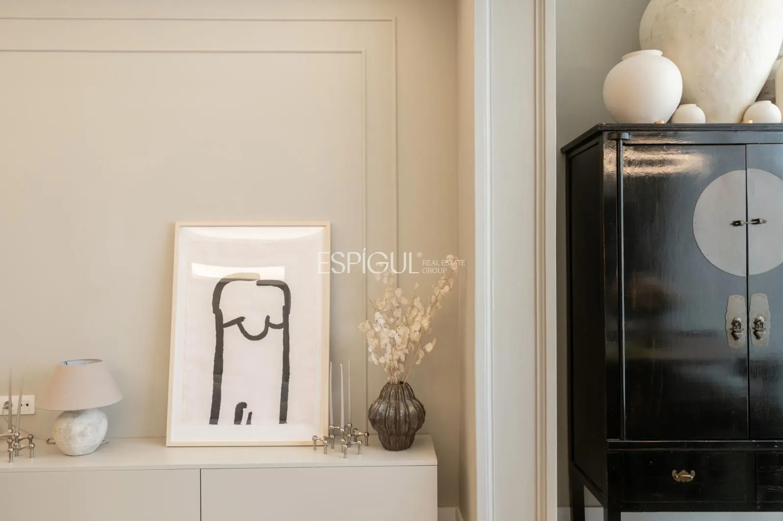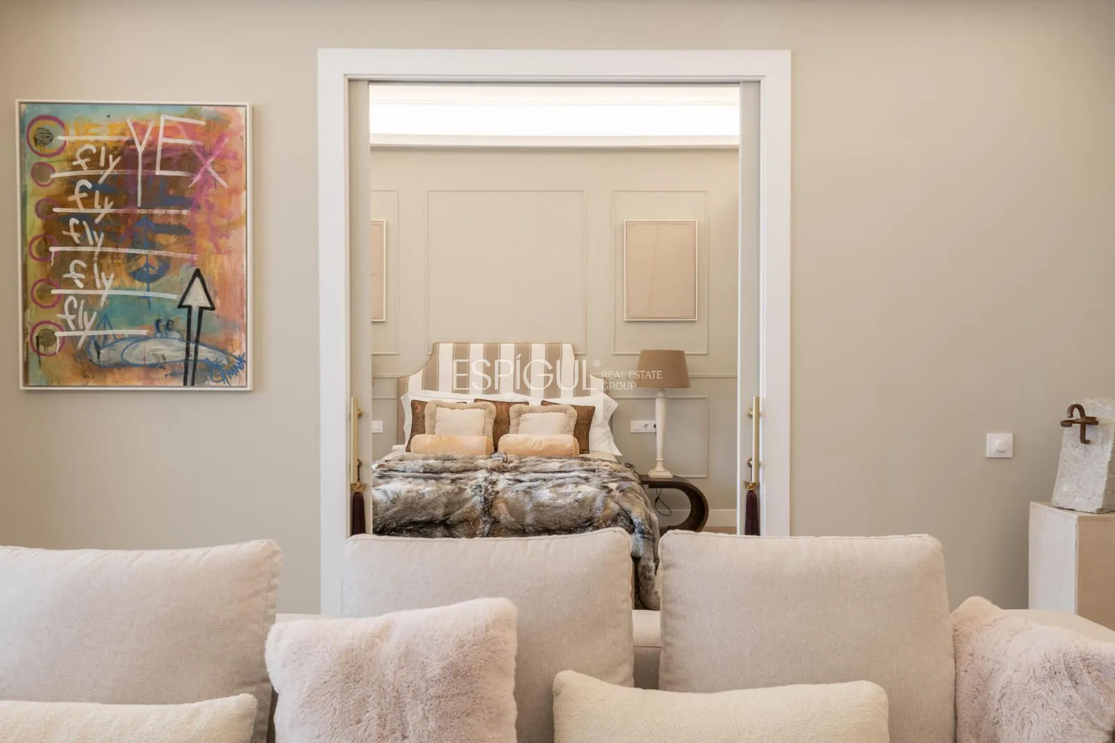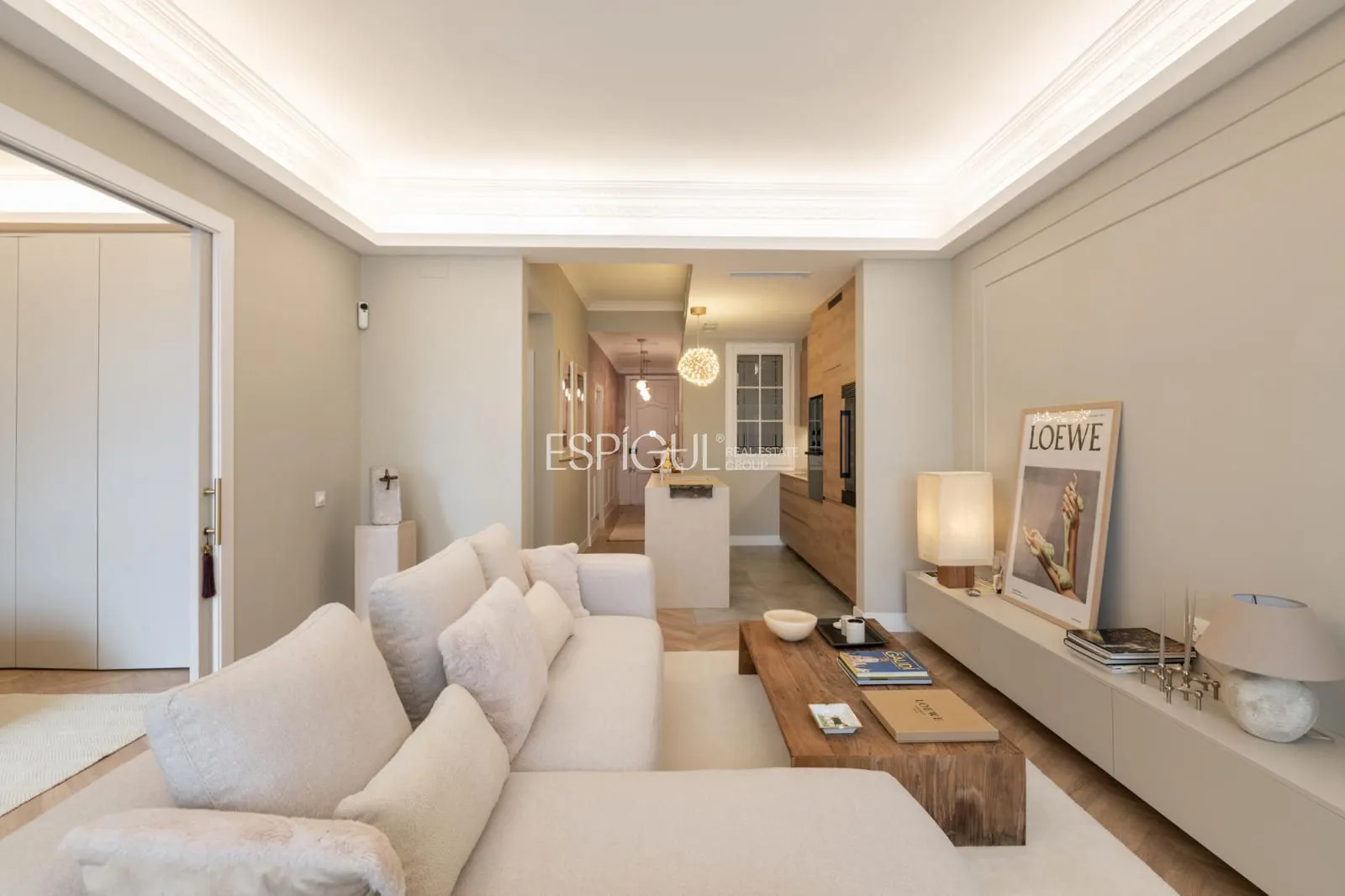 La vivienda ha sido sometida a una reforma integral de alto nivel, combinando diseño contemporáneo con la conservación de elementos originales característicos, como techos altos, molduras y proporciones señoriales.