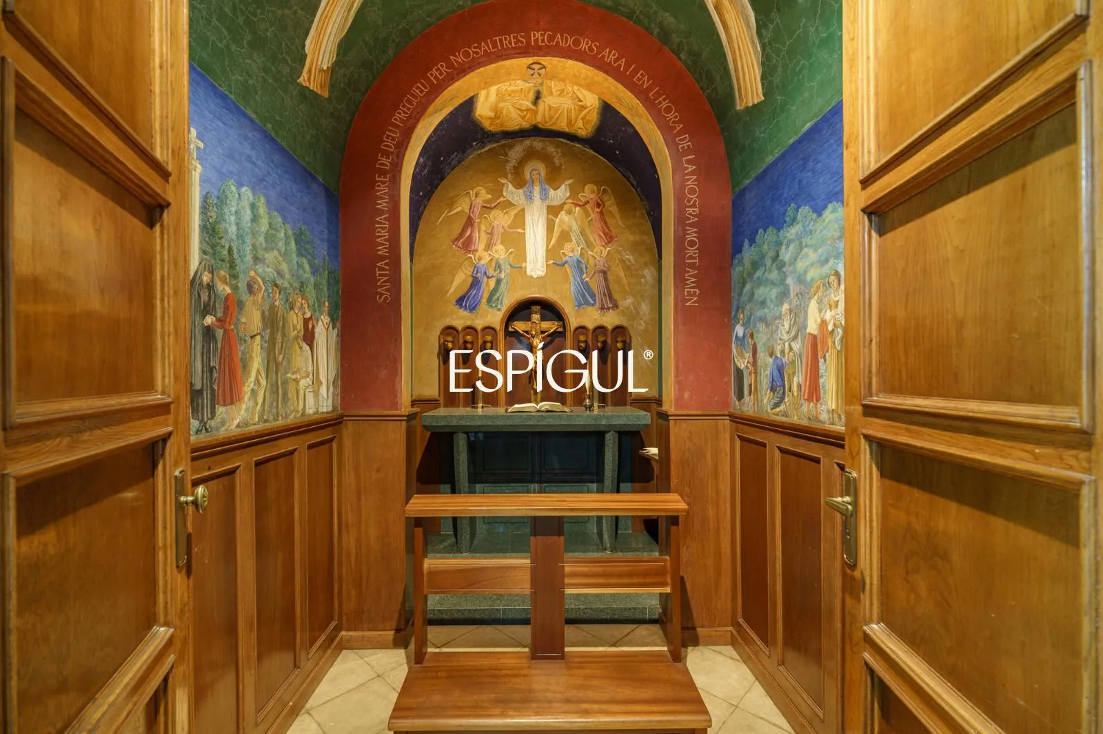 La planta principal sorprende por su armoniosa organización alrededor de una imponente sala central presidida por una elegante escalera. En este nivel encontramos varios salones con chimenea, comedores independientes, cocina, dormitorios tipo suite y una singular capilla con frescos del reconocido pintor Ricard Marlet, aportando un valor artístico incomparable.