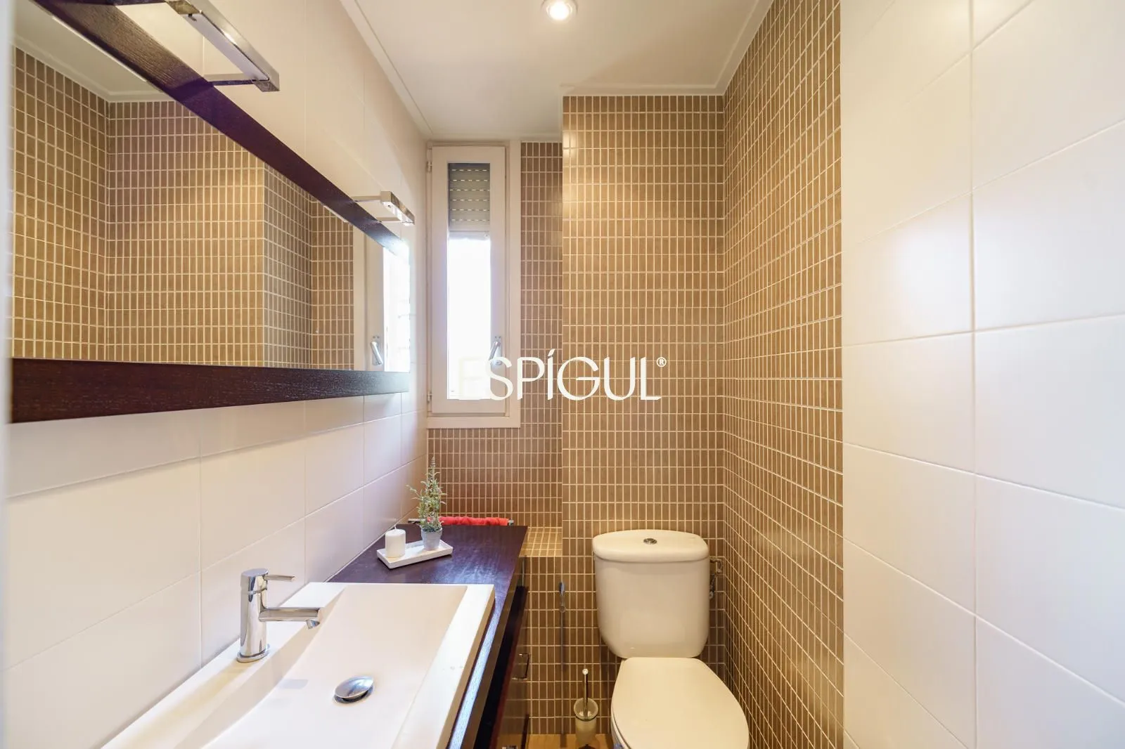 La vivienda está equipada con aire acondicionado, calefacción individual por gasoil con radiadores de hierro fundido, armarios empotrados y plaza de aparcamiento incluida. Cuenta también con espacios subterráneos multifuncionales ideales como zona de servicio, bodega o área de trabajo.