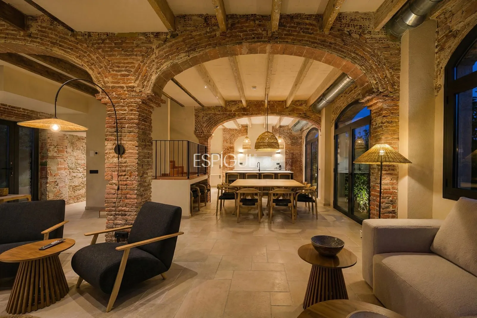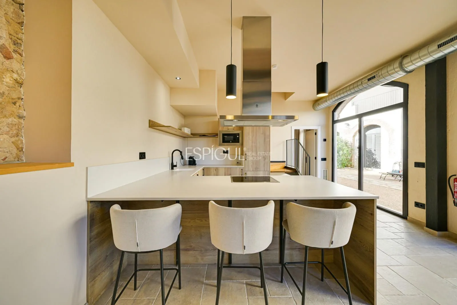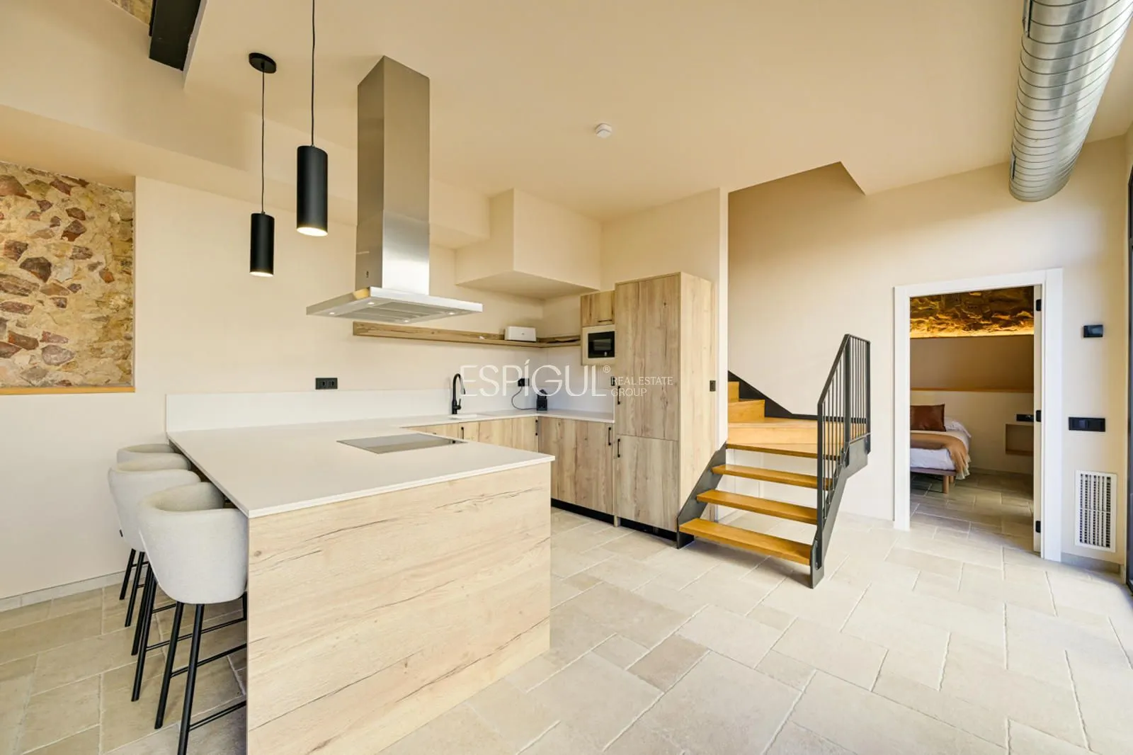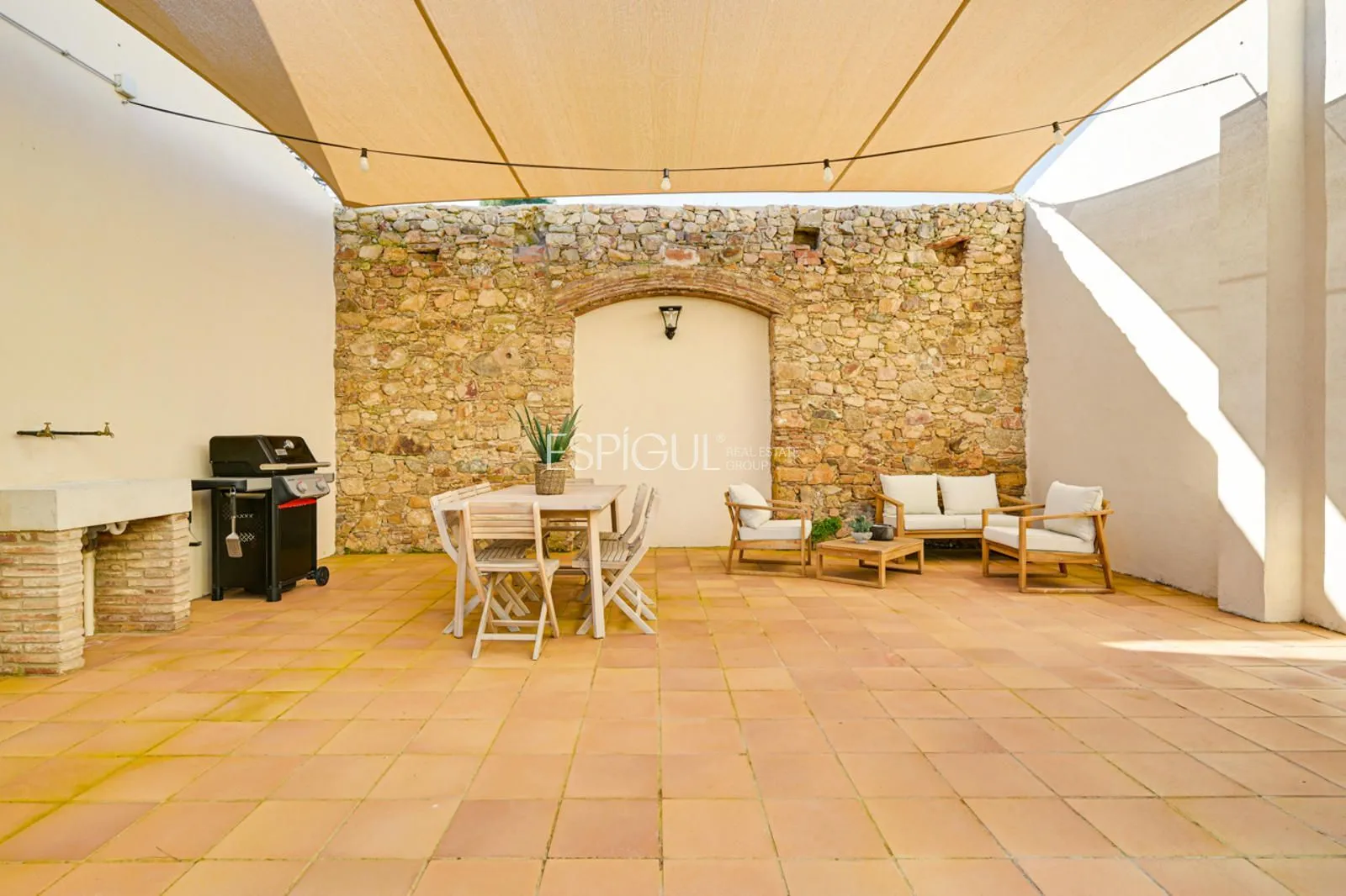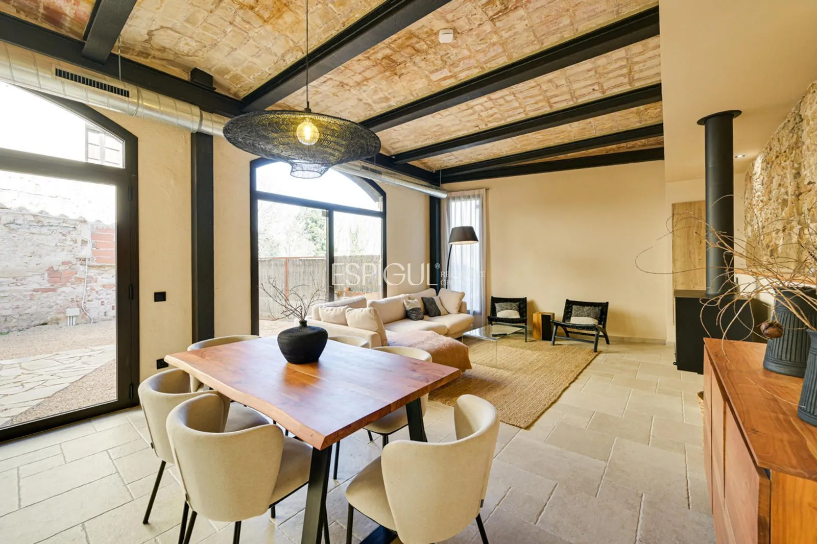 Vivienda principal: rehabilitada conservando su carácter original y adaptada a un uso moderno y funcional. En planta baja se distribuye la cocina abierta al salón comedor, zona de lavandería y aseo de cortesía, con salida al porche con barbacoa y al jardín con piscina junto al antiguo molino histórico. En la primera planta se ubican cuatro dormitorios en suite, y la planta superior cuenta con una buhardilla con dormitorio y bañera exenta con vistas abiertas al entorno.