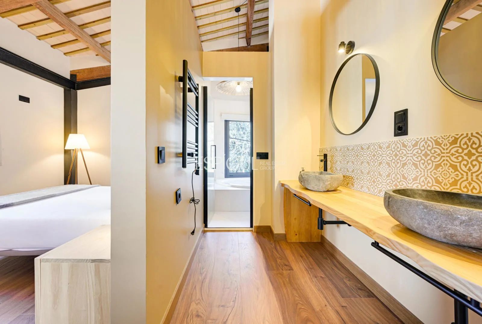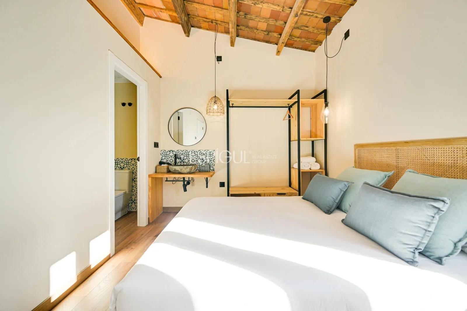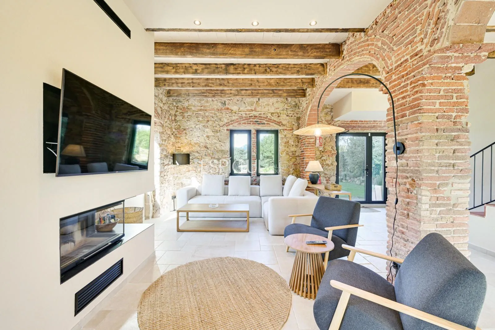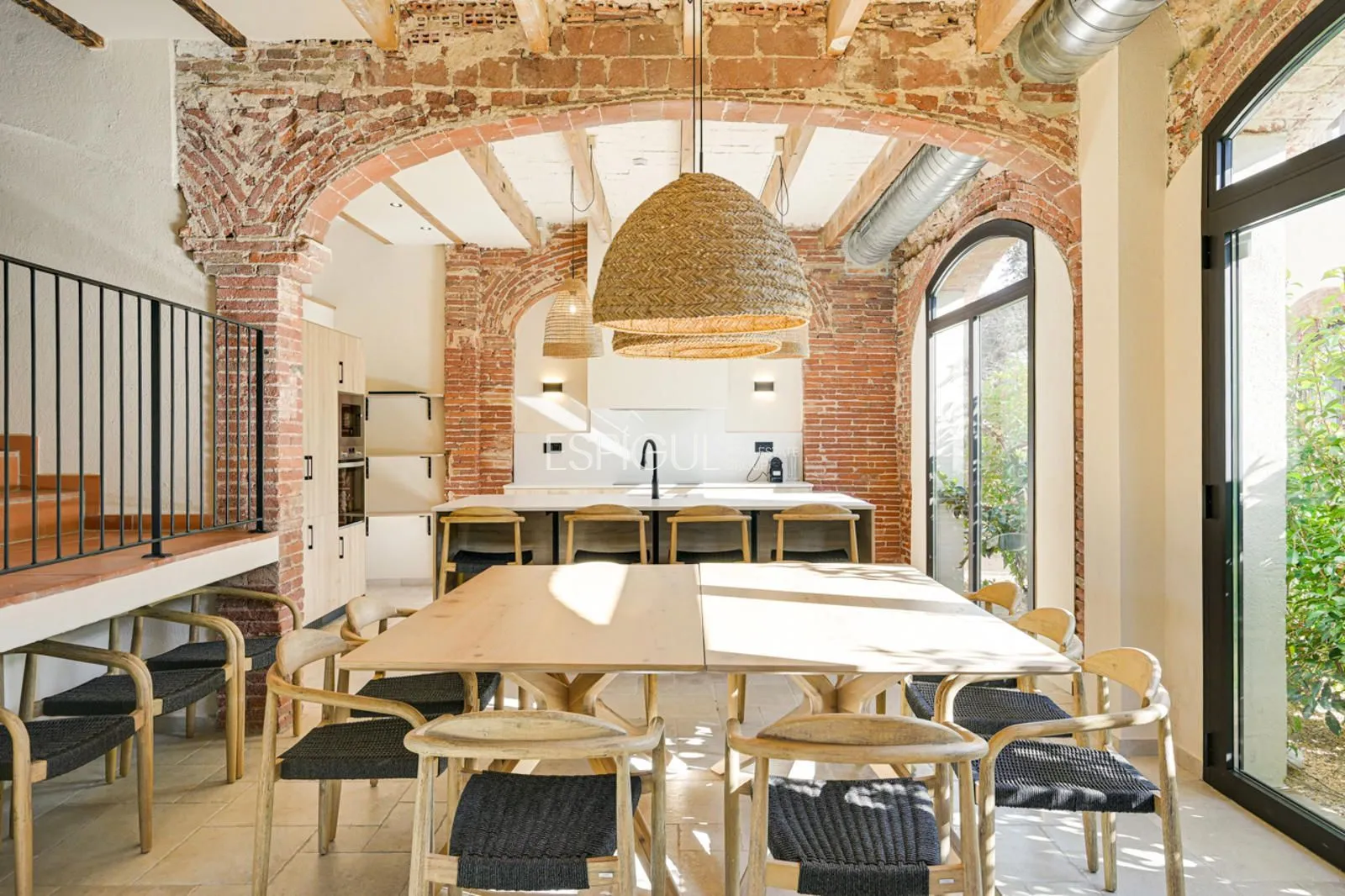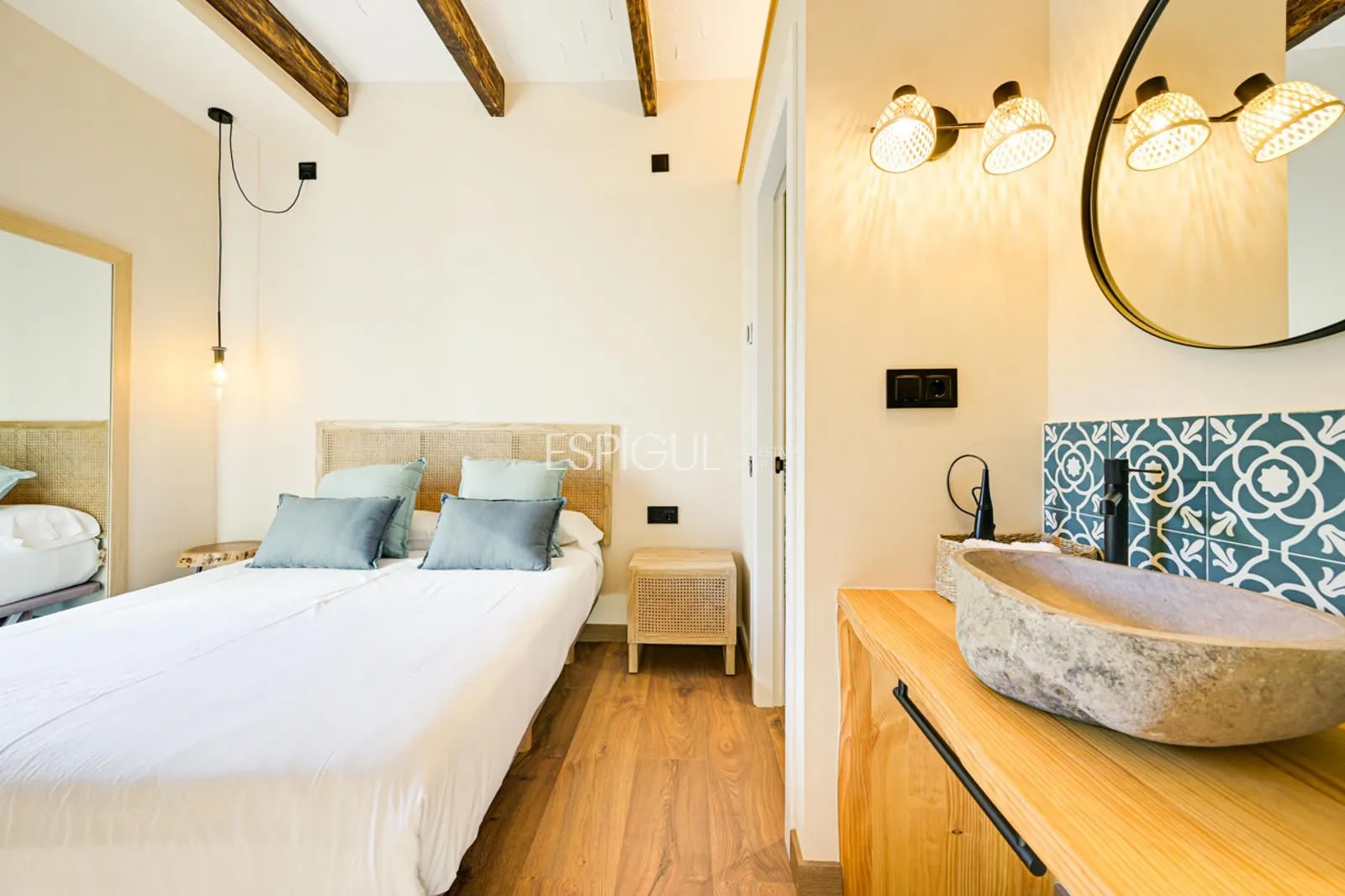 Vivienda principal: rehabilitada conservando su carácter original y adaptada a un uso moderno y funcional. En planta baja se distribuye la cocina abierta al salón comedor, zona de lavandería y aseo de cortesía, con salida al porche con barbacoa y al jardín con piscina junto al antiguo molino histórico. En la primera planta se ubican cuatro dormitorios en suite, y la planta superior cuenta con una buhardilla con dormitorio y bañera exenta con vistas abiertas al entorno.