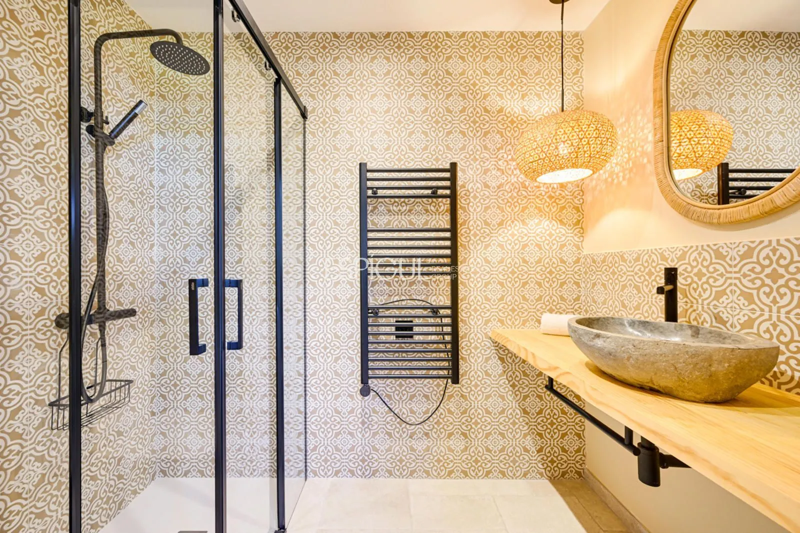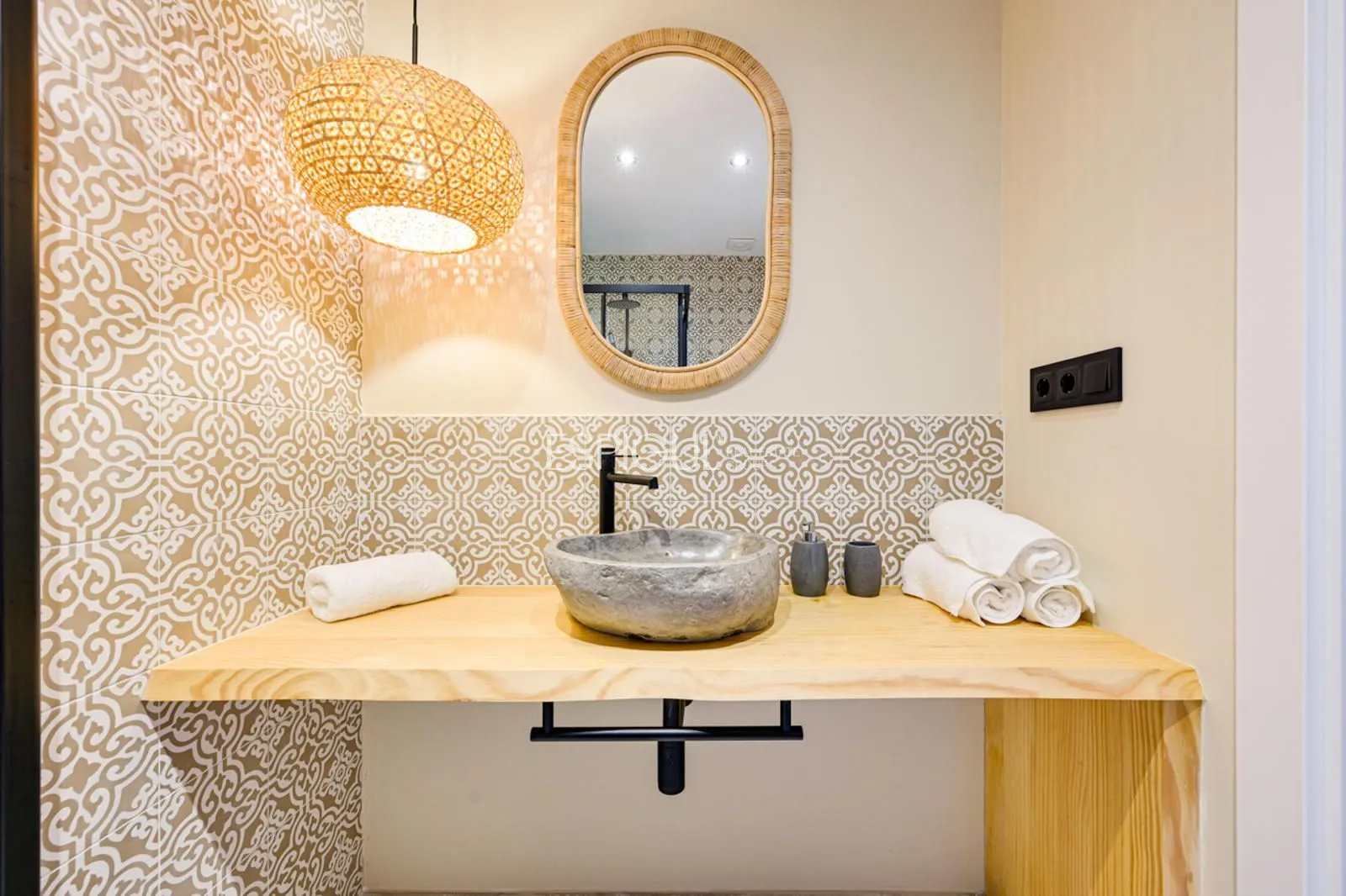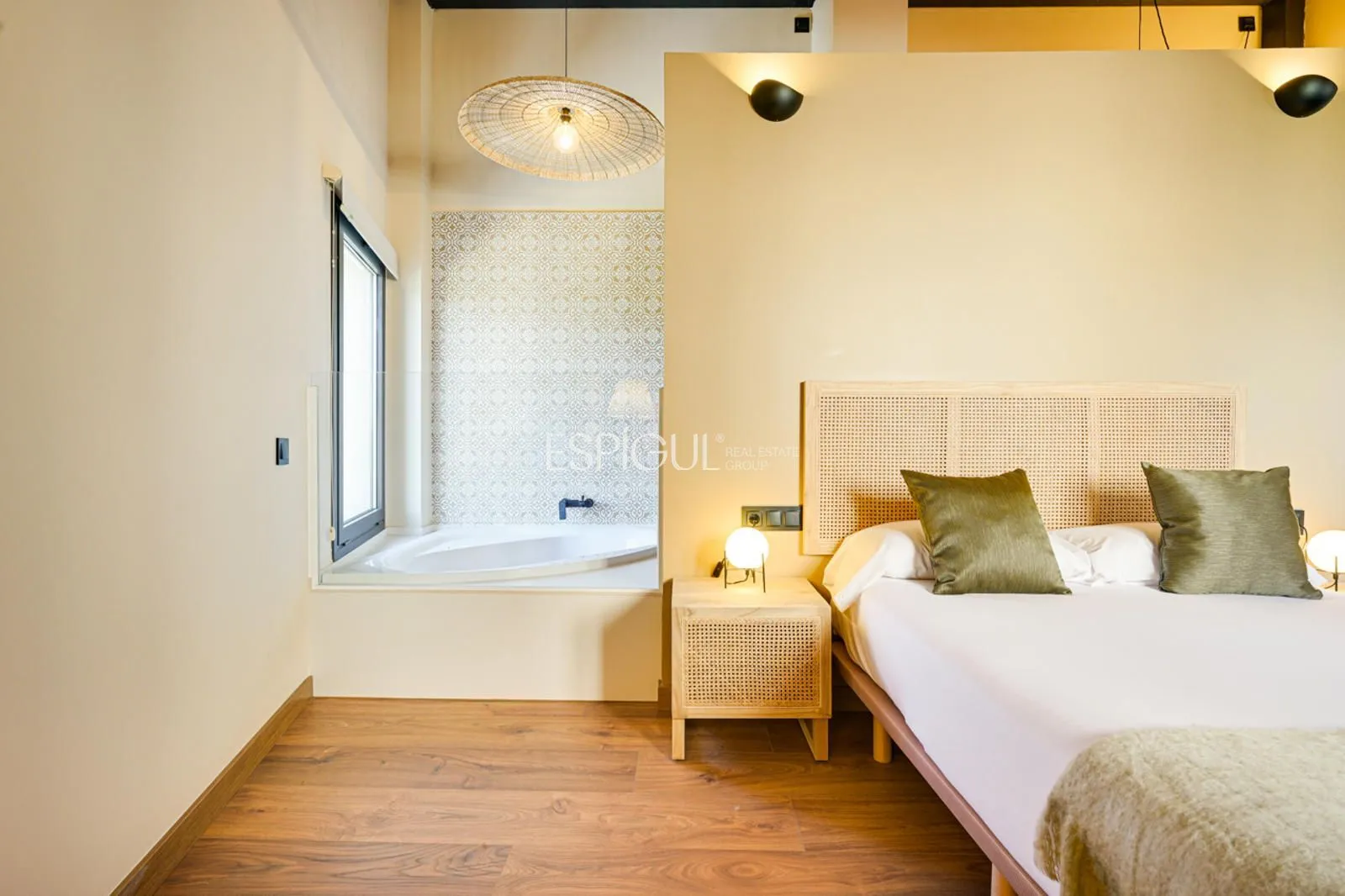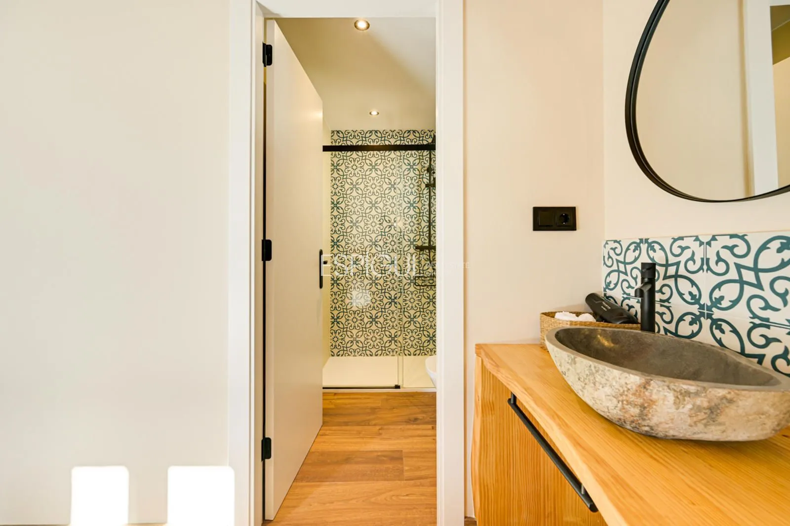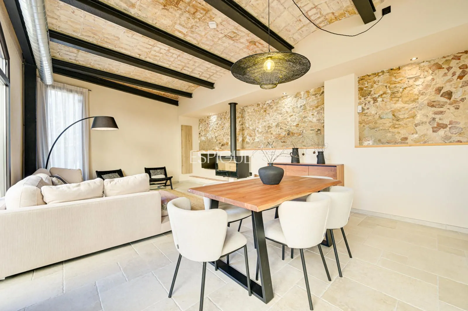 Vivienda principal: rehabilitada conservando su carácter original y adaptada a un uso moderno y funcional. En planta baja se distribuye la cocina abierta al salón comedor, zona de lavandería y aseo de cortesía, con salida al porche con barbacoa y al jardín con piscina junto al antiguo molino histórico. En la primera planta se ubican cuatro dormitorios en suite, y la planta superior cuenta con una buhardilla con dormitorio y bañera exenta con vistas abiertas al entorno.
