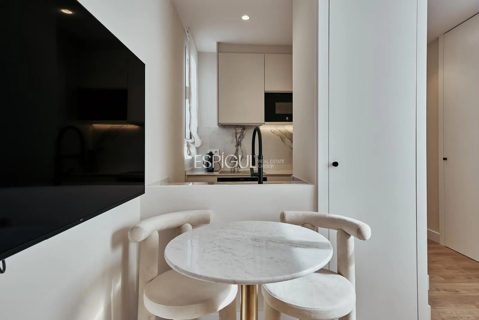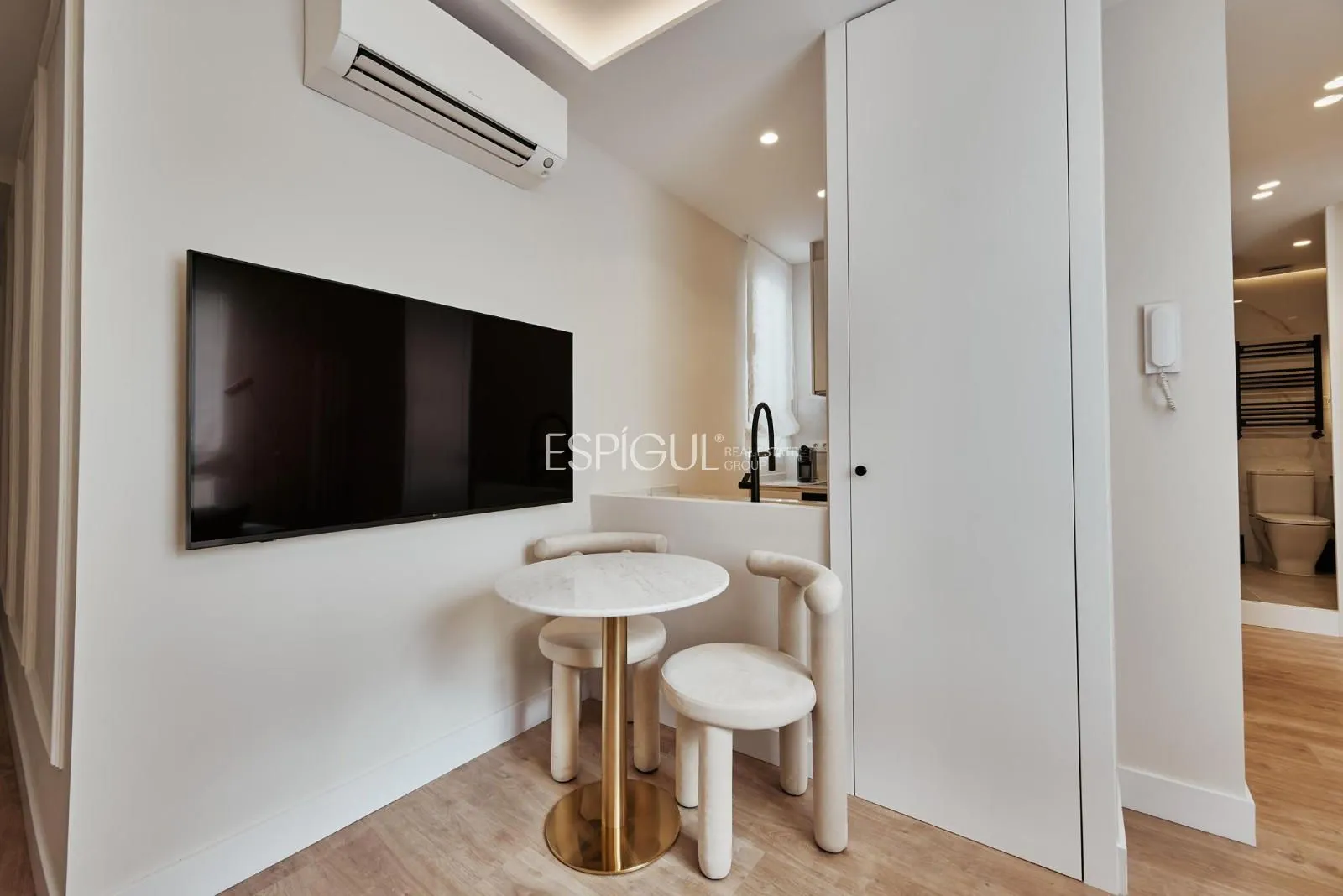 Cada estancia ha sido concebida para optimizar el espacio y aportar funcionalidad, manteniendo una estética actual y equilibrada. Dispone de aire acondicionado y el edificio cuenta con ascensor y servicio de portería.
