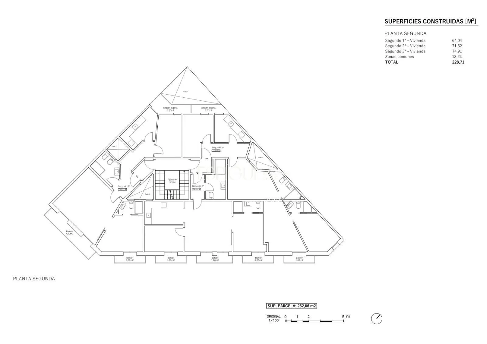 Ubicada en una tercera planta real, esta vivienda destaca por su luminosidad gracias a su orientación sur y al chaflán de la finca, que permite la entrada de luz durante todo el día. El salón-comedor, la suite principal y el segundo dormitorio se abren a un balcón exterior con vistas a la calle, creando espacios cálidos y confortables.