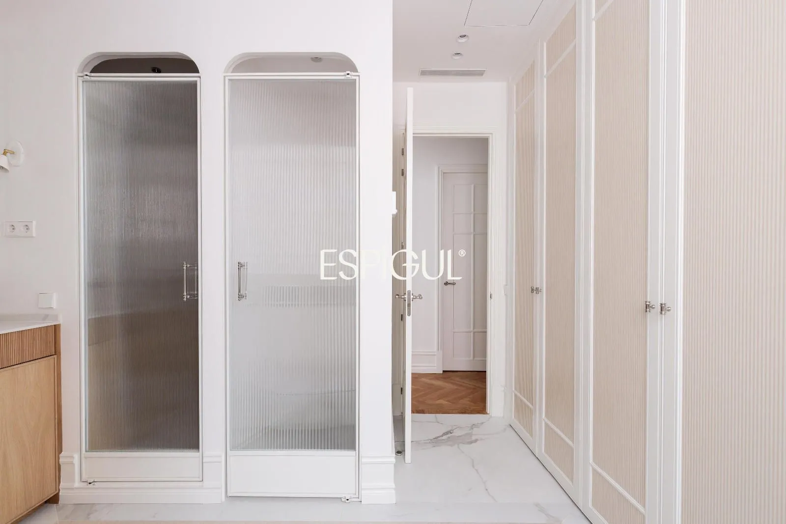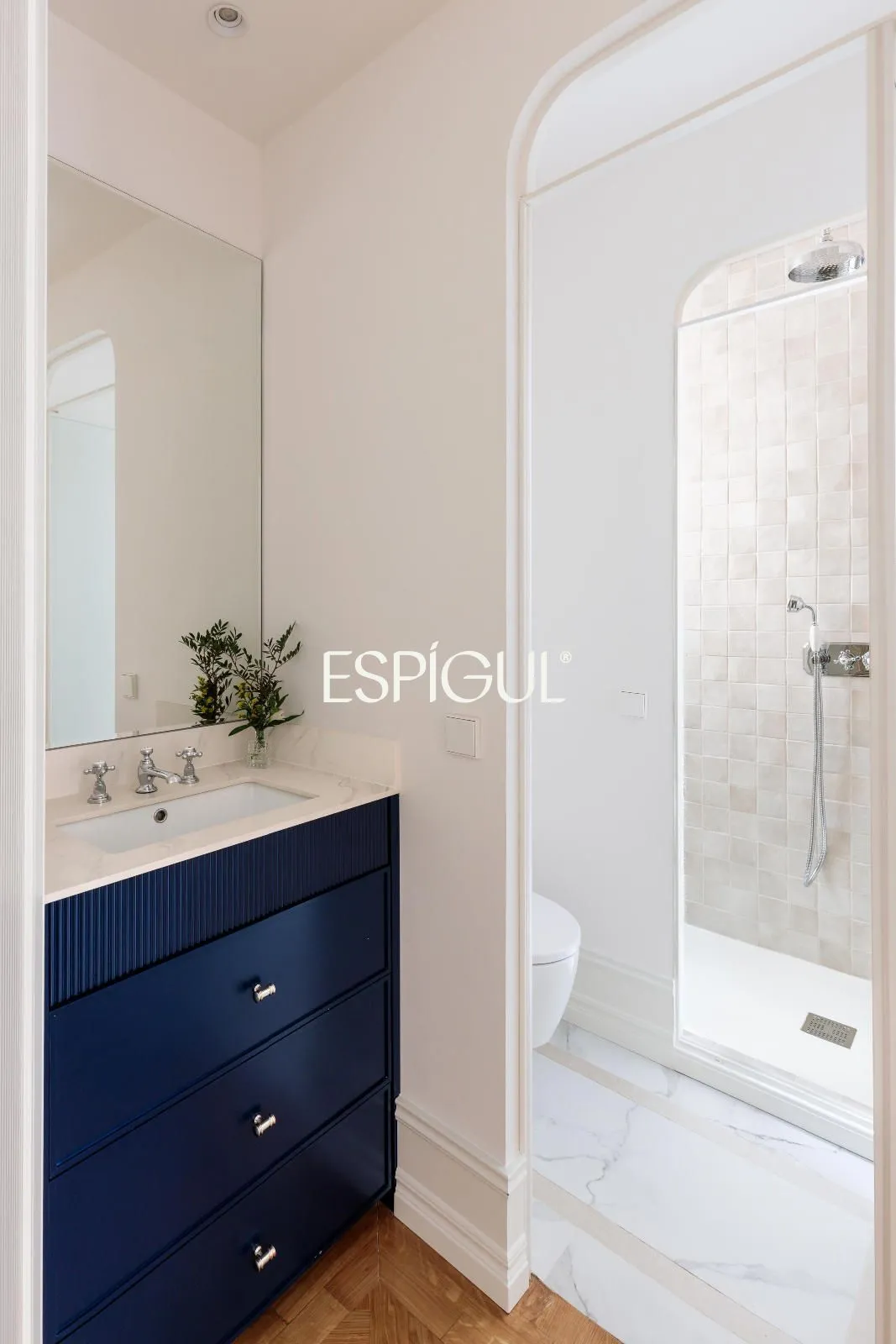 La vivienda dispone de tres dormitorios, todos ellos de generosas dimensiones, y tres baños completos, además de un aseo de cortesía, lo que garantiza el máximo confort tanto para la vida diaria como para recibir invitados. Los acabados de la reforma han sido cuidadosamente seleccionados, combinando diseño contemporáneo con materiales de calidad y una estética atemporal.