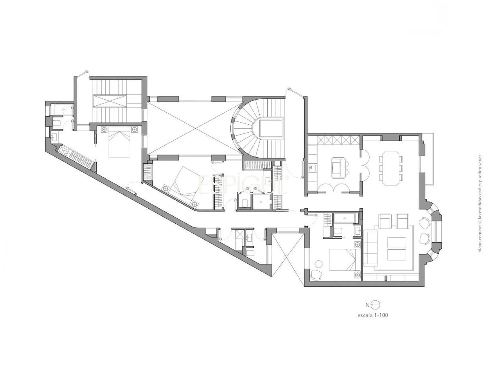 Con una superficie aproximada de 227 m², el piso ofrece espacios amplios, equilibrados y muy luminosos gracias a su excelente orientación sur. La zona de día cuenta con una distribución funcional y elegante, con salida a un agradable balcón que aporta luz natural y conexión con el exterior.