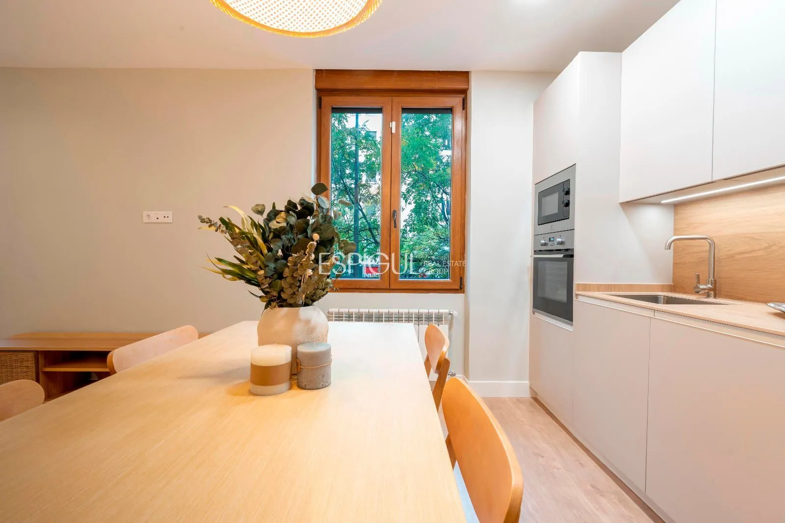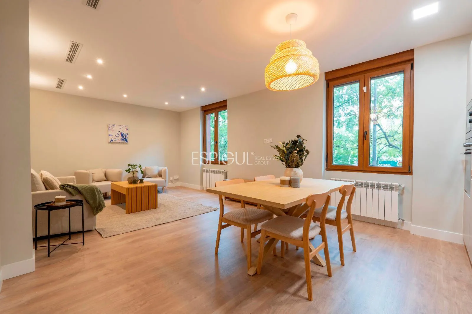 Las siete ventanas que se distribuyen por toda la propiedad—un privilegio muy poco común en la zona—proporcionan luz natural continua y una sensación de amplitud que envuelve cada estancia. El corazón de la vivienda es su amplio salón-comedor de más de 30 m², un espacio concebido para disfrutar, compartir y vivir con estilo, donde la iluminación y la distribución abierta potencian la armonía visual.