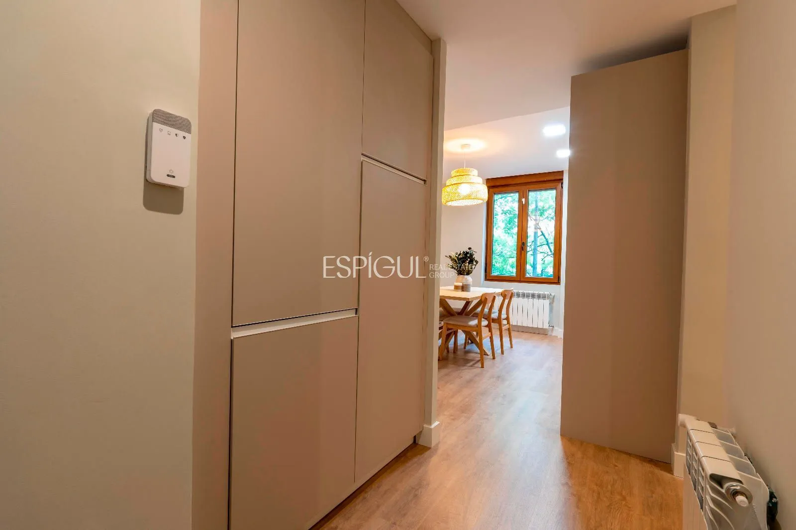 En cuanto a acabados, la vivienda incorpora suelos de madera natural, carpintería a medida en toda la casa y una ejecución cuidada al detalle, reflejo de una reforma pensada para perdurar.
