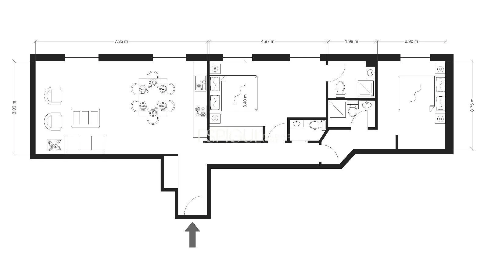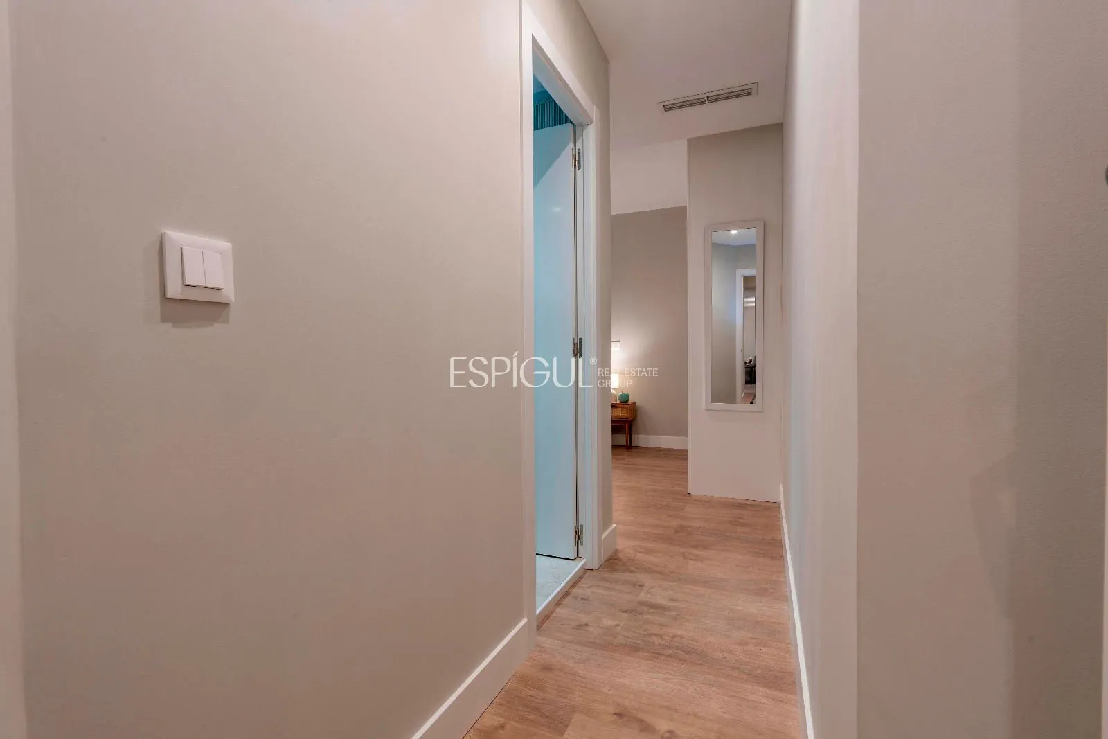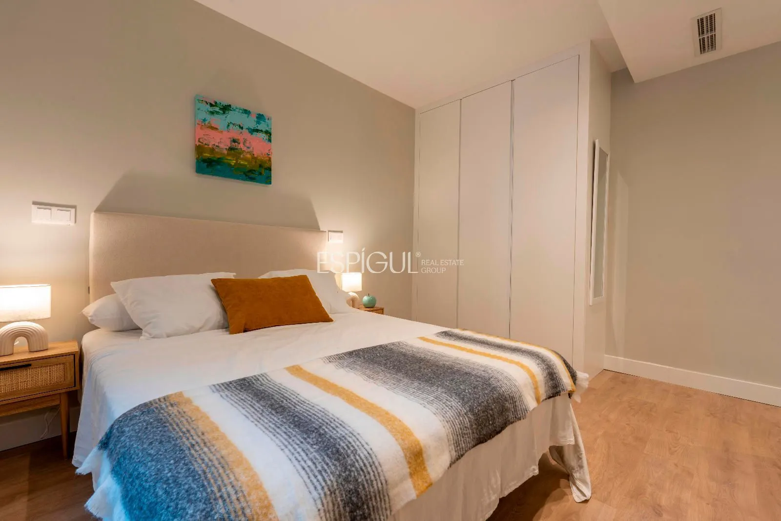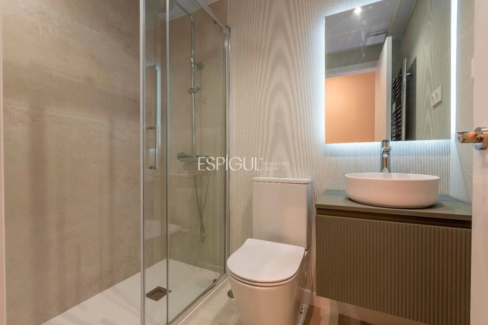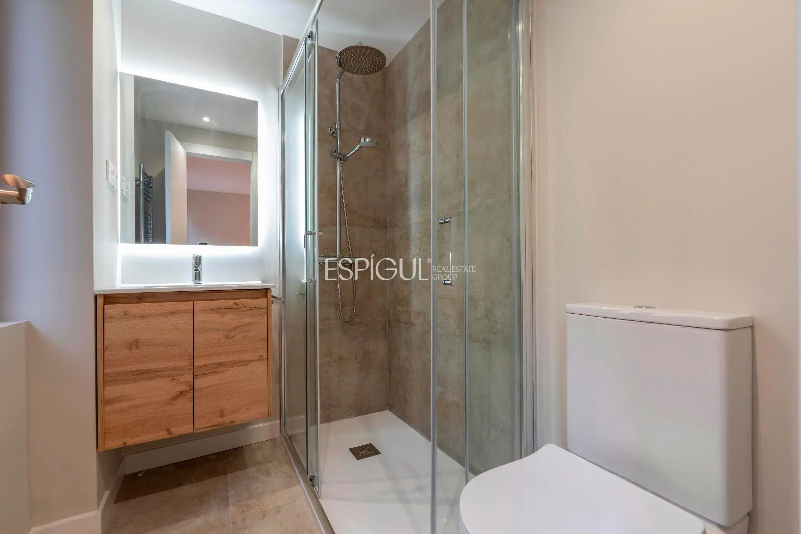 Los dos dormitorios destacan por su privacidad y confort, cada uno con baño en suite y armarios empotrados a medida que maximizan la capacidad de almacenamiento. Los baños, ejecutados con porcelánicos de gran formato, iluminación retroiluminada y detalles de diseño, aportan una estética moderna y serena.