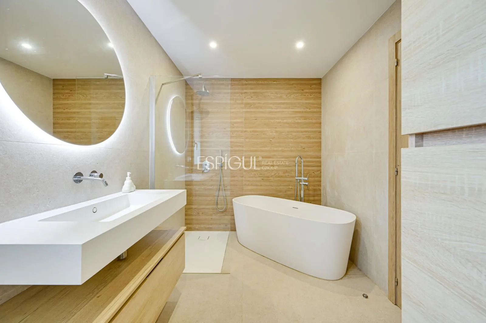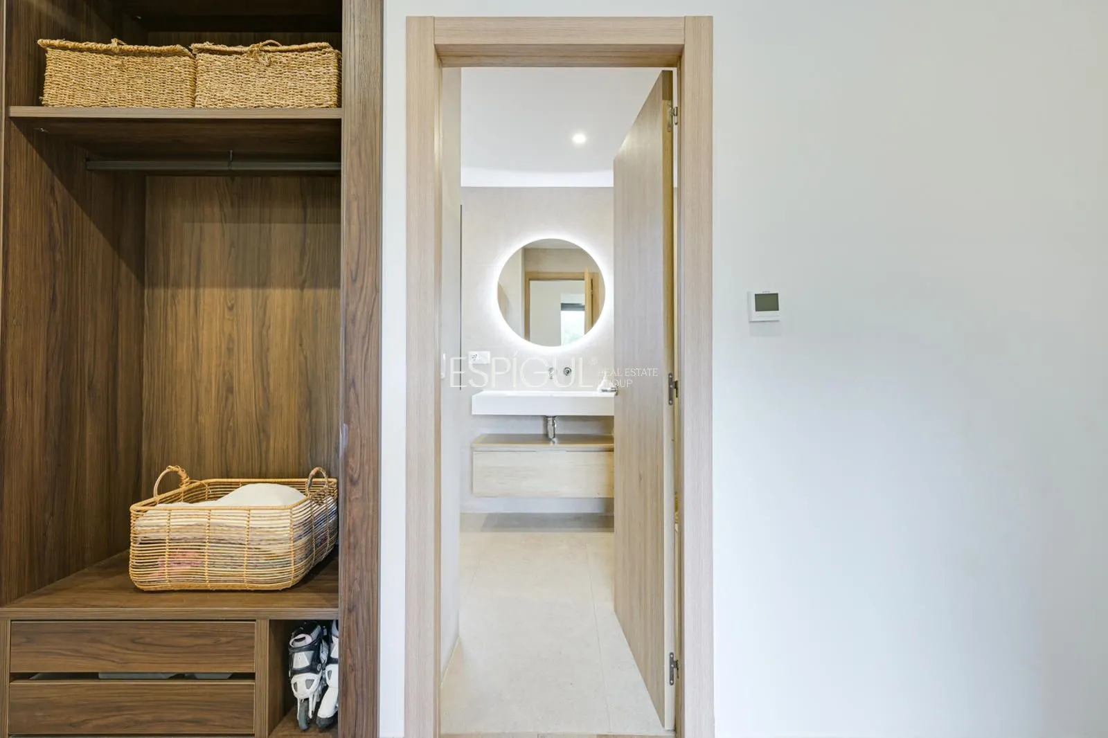 La planta superior está dedicada a la suite principal, que cuenta con vestidor independiente y acceso a una amplia terraza con vistas panorámicas al mar. Este nivel se complementa con un espacio abierto versátil, ideal como despacho, área de lectura o zona de entretenimiento.