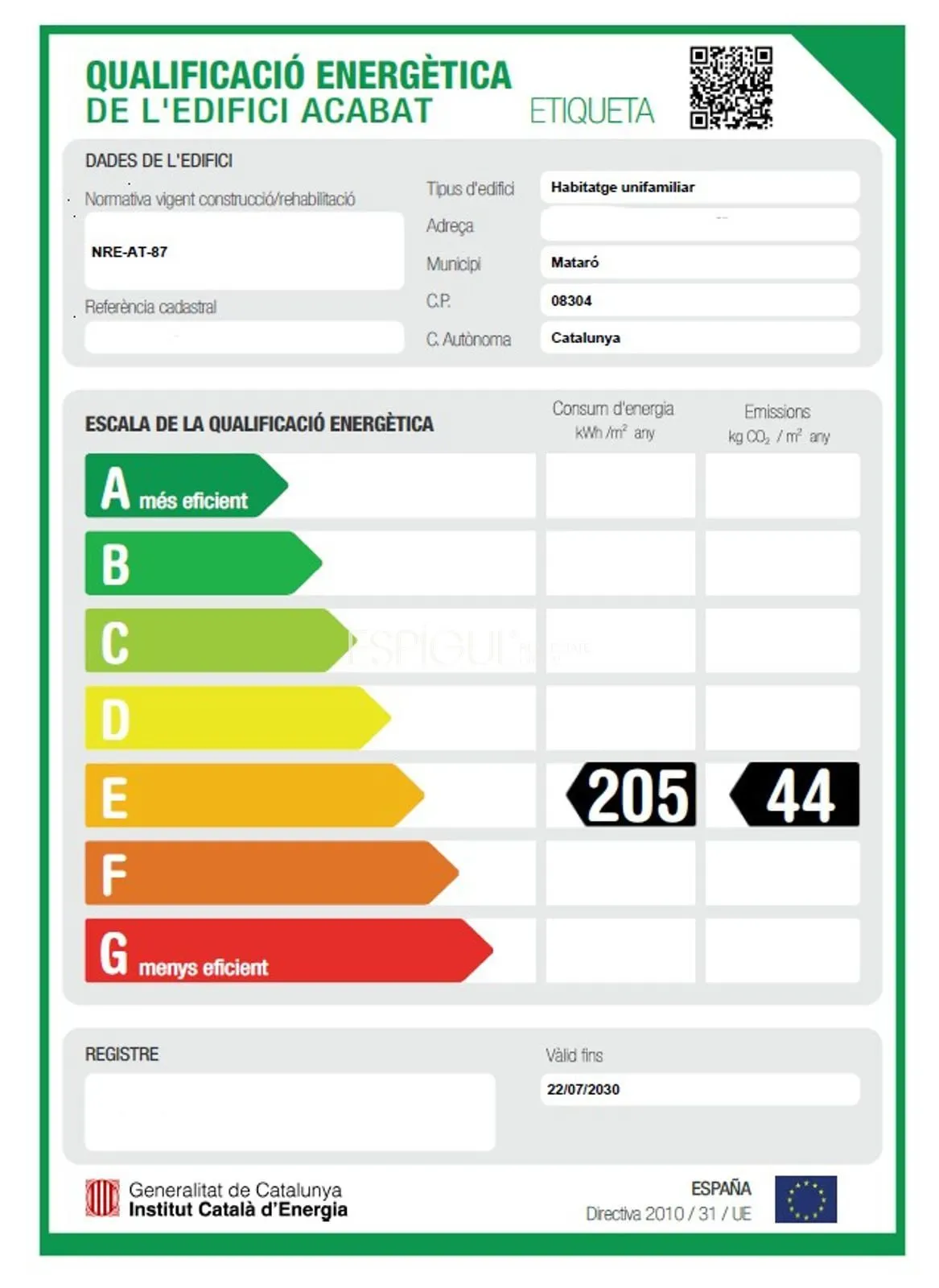 - Certificación energética E