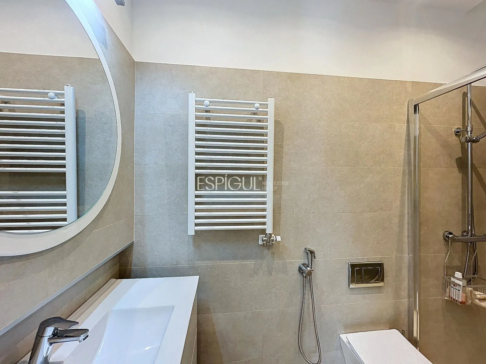 En la planta inferior, un apartamento independiente ofrece un amplio salón con chimenea y zona de estar, baño completo con jacuzzi y ducha, y una moderna cocina con comedor, área de lavandería y una habitación de servicio con baño.