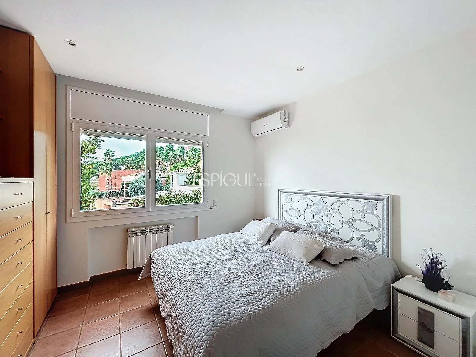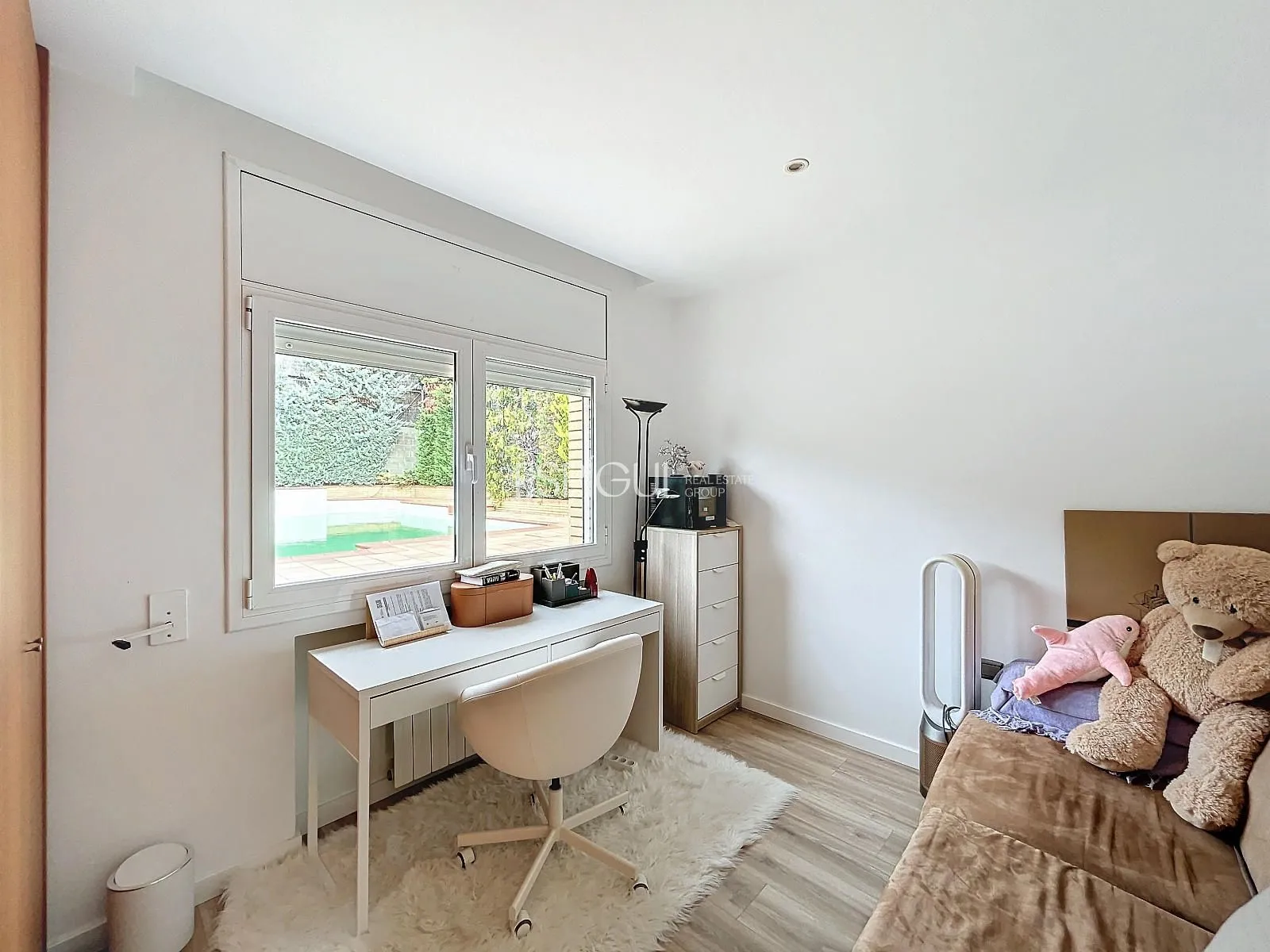 Además, cuenta con dos habitaciones dobles con vistas al jardín, que comparten un baño completo, y una cuarta habitación con vistas a la piscina y baño en suite con ducha.