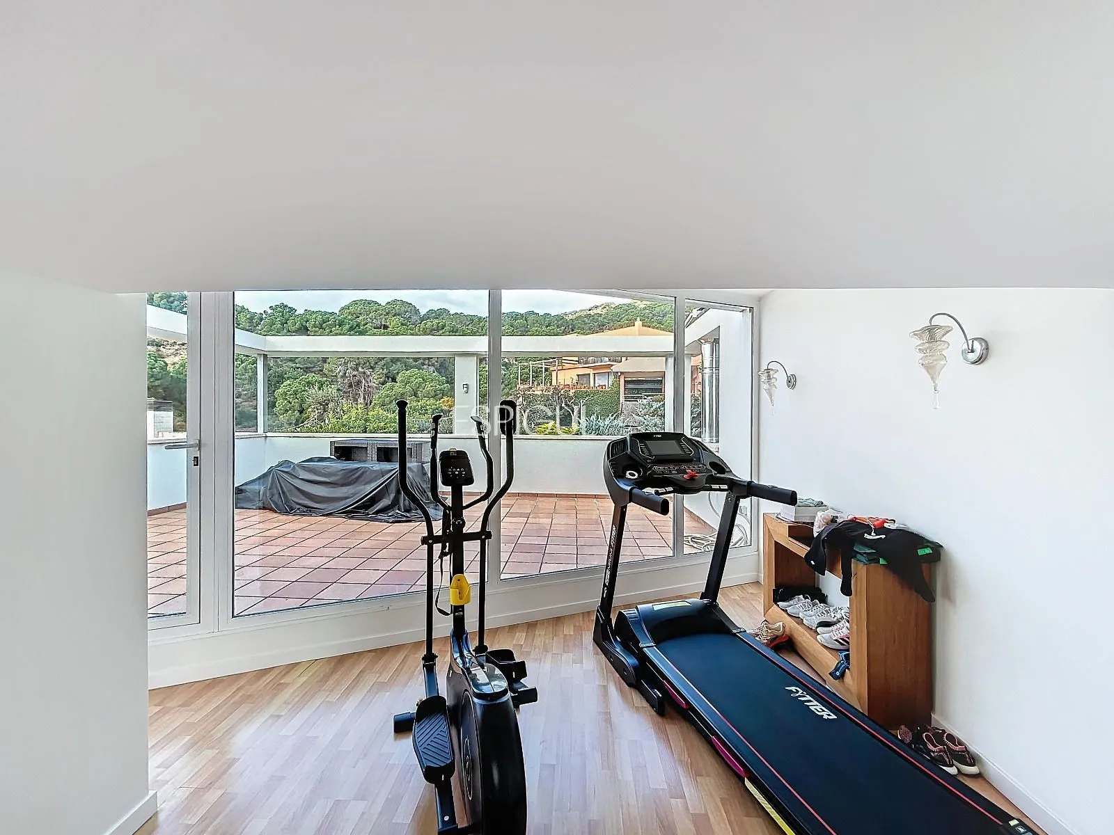 En la última planta, un gimnasio privado con acceso a dos terrazas con vistas al mar y la montaña crea un espacio perfecto para el bienestar.