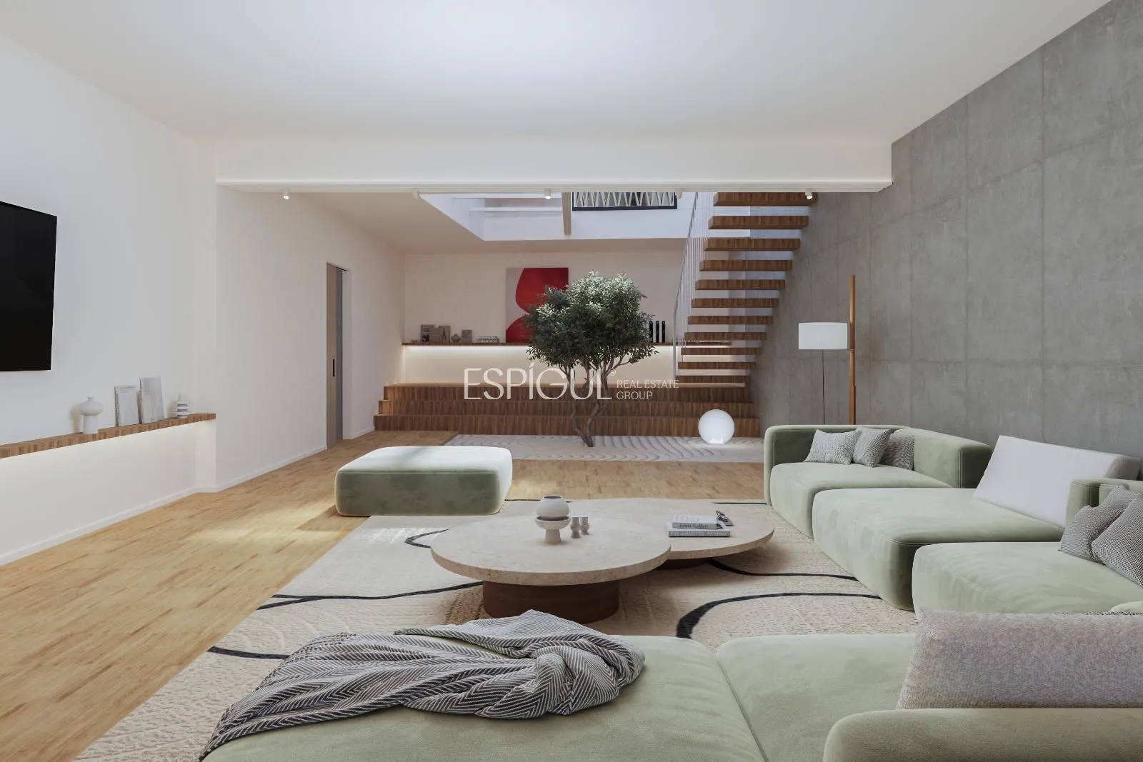 Las tres plantas están unidas por una escalera de diseño.