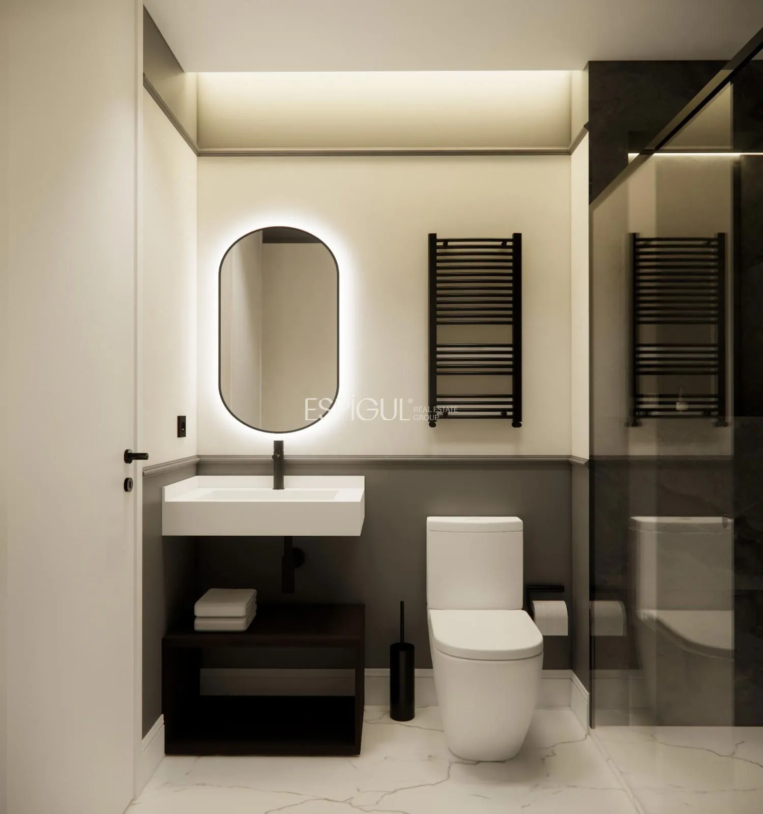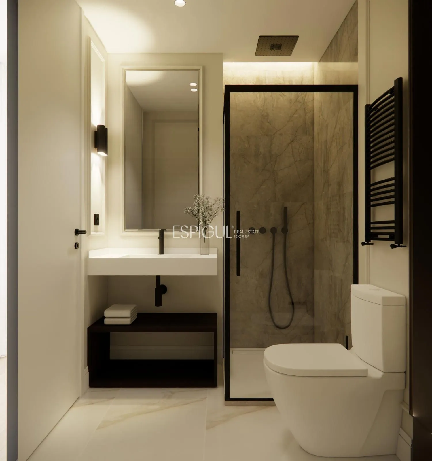 La zona de descanso alberga tres dormitorios y tres baños completos, todos diseñados con líneas limpias y materiales nobles, garantizando confort y armonía en cada estancia. Además, dispone de un cuarto de lavado independiente, un detalle que refuerza su practicidad y confort cotidiano.