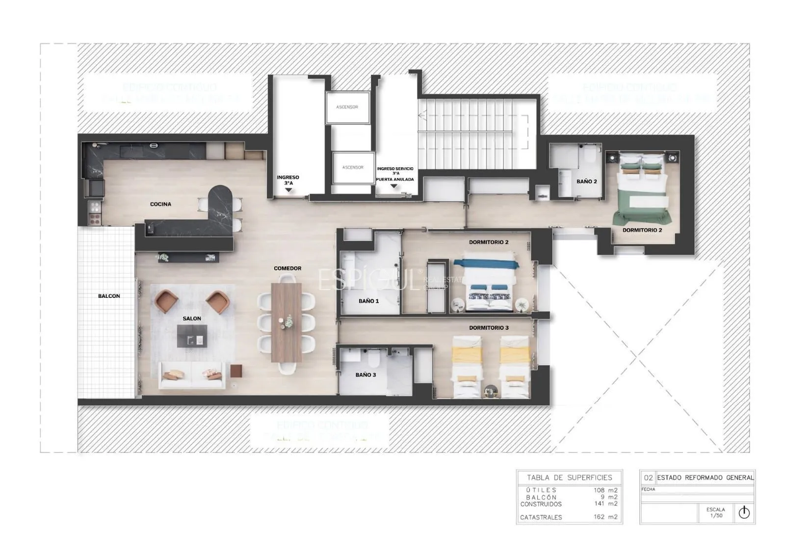 En el prestigioso Barrio de Salamanca, una de las zonas más codiciadas de Madrid, se encuentra esta vivienda de lujo en María de Molina, un espacio donde la arquitectura clásica se funde con el diseño contemporáneo. Situada en la tercera planta exterior de una finca representativa construida en 1966 con ascensor, esta propiedad ha sido reformada íntegramente con materiales de primera calidad, cuidando cada detalle para ofrecer una experiencia residencial única. Con 141 m² construidos (108 m² útiles), la vivienda presenta una distribución amplia, equilibrada y luminosa. El elegante salón-comedor exterior cuenta con acceso a una terraza, ideal para disfrutar de momentos al aire libre con total privacidad. La cocina independiente, completamente equipada con electrodomésticos de alta gama, combina funcionalidad y estilo.