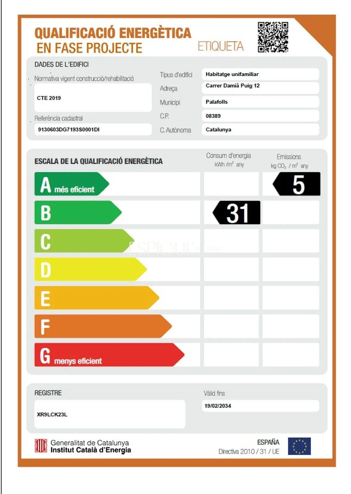 • Certificación energética B