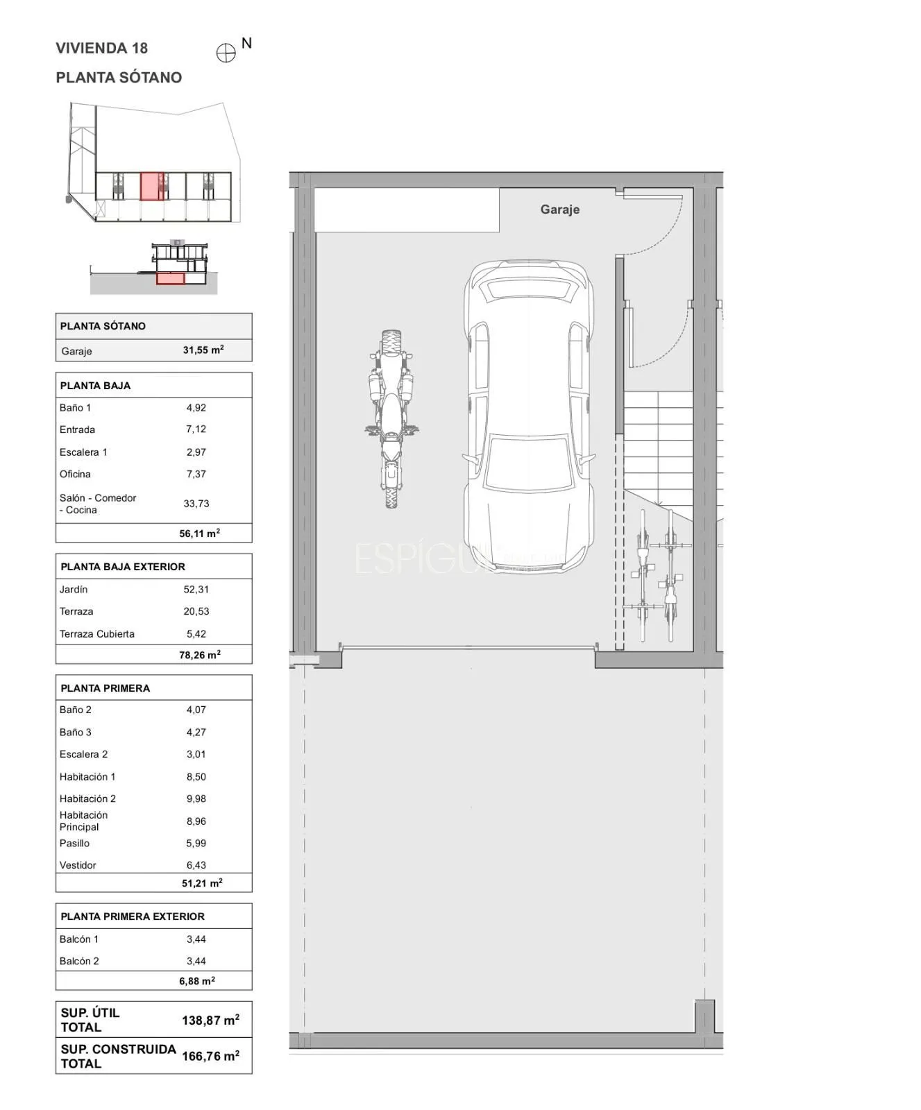 Sótano: Conexión directa desde el salón al garaje privado, que ofrece un amplio espacio de almacenamiento.