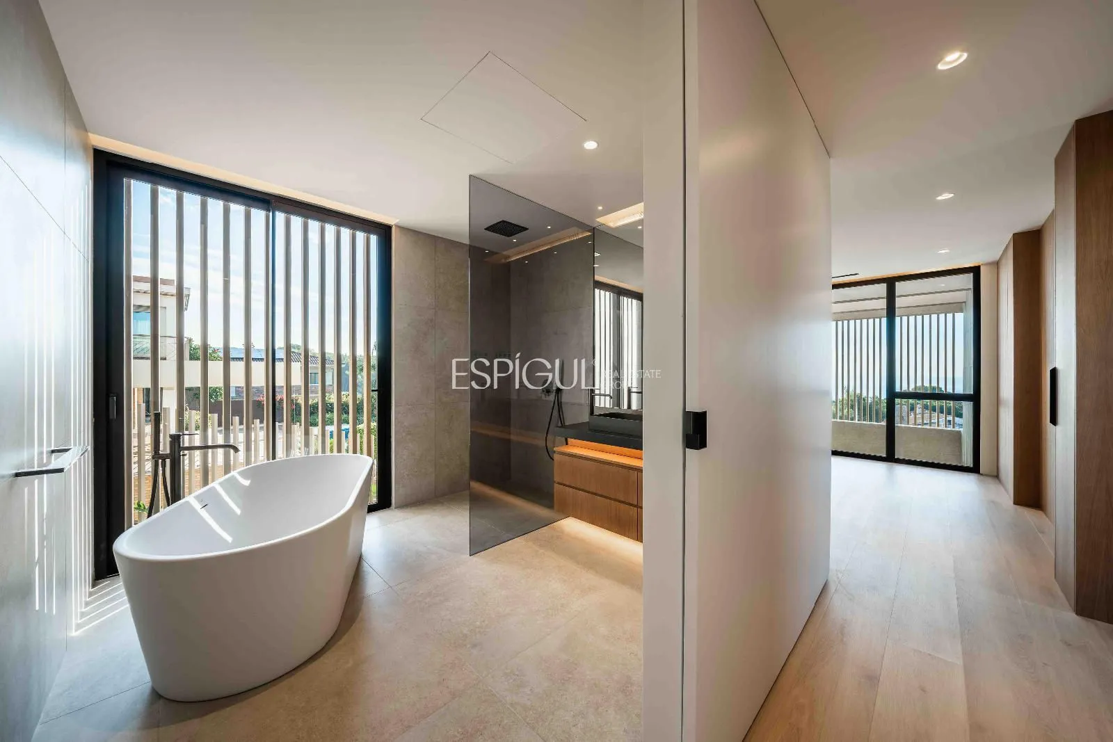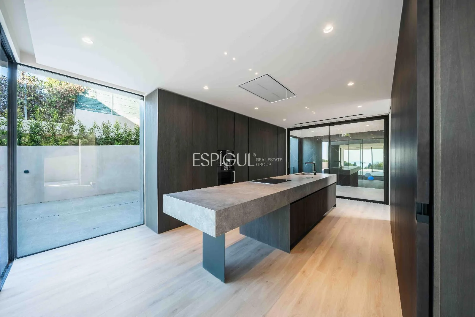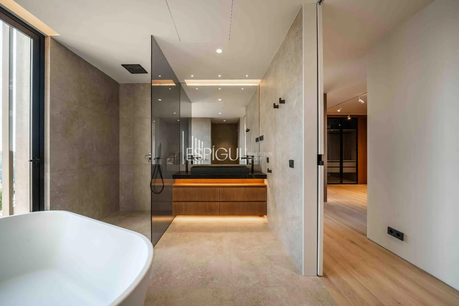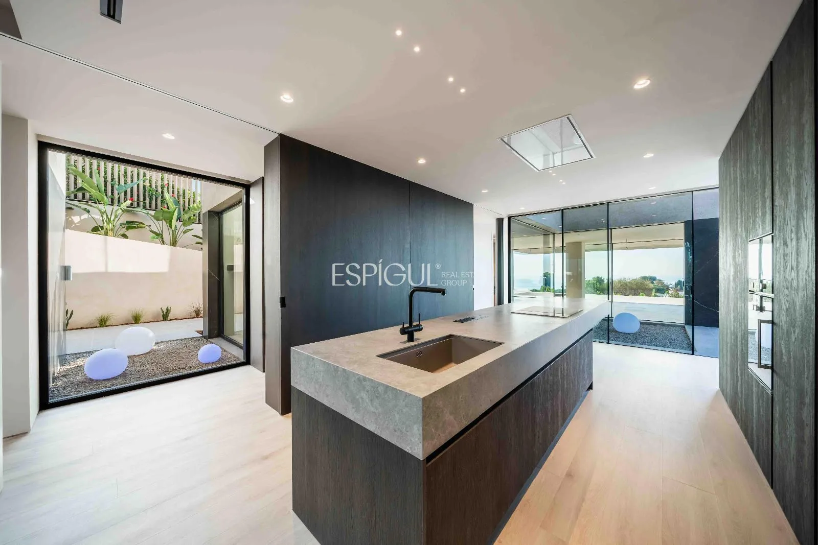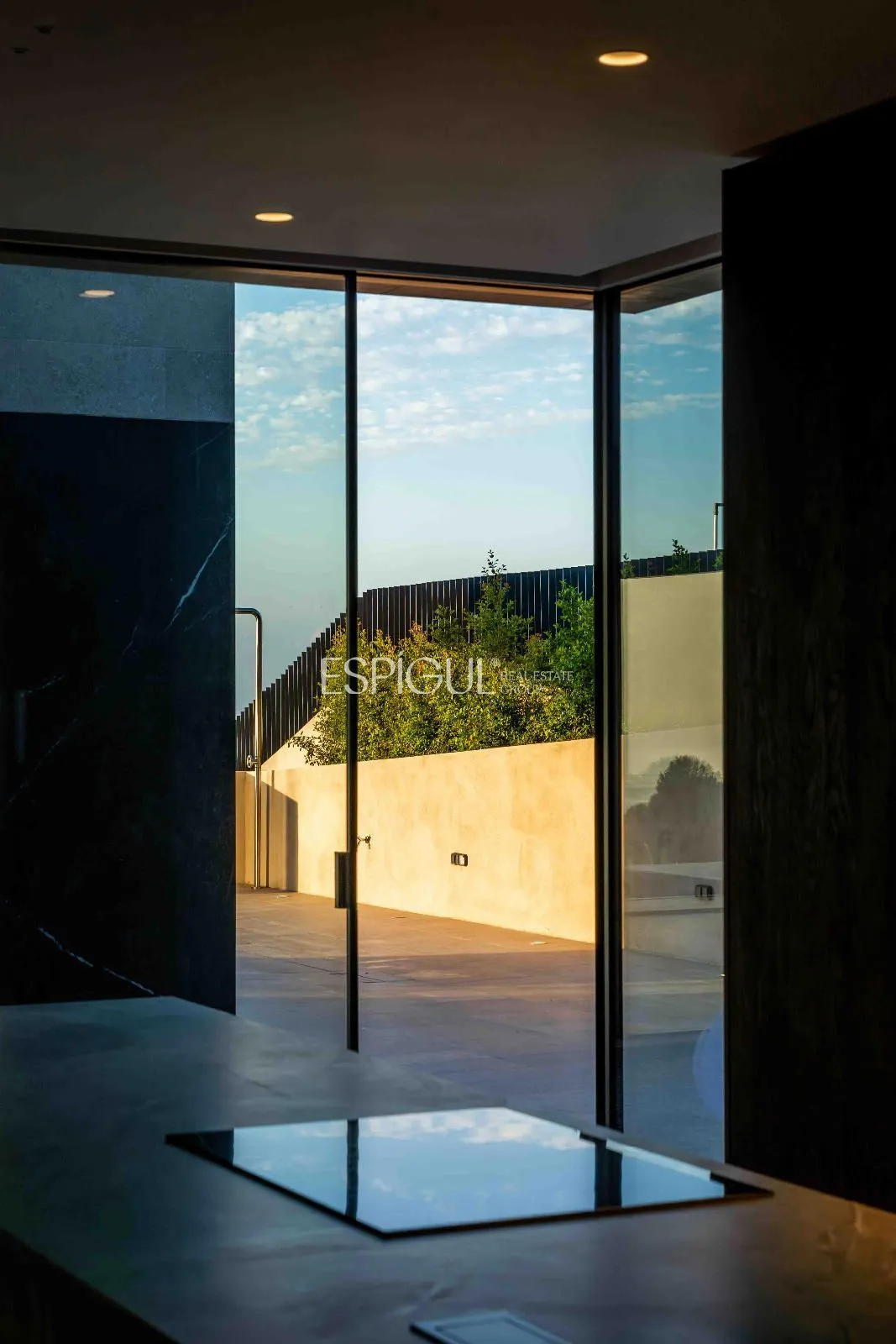 Salón-comedor: Un amplio espacio diáfano de 46 m² con una acogedora chimenea, que se abre a una terraza privada con vistas panorámicas al Mediterráneo. Despierta cada mañana con el mar como telón de fondo y disfruta de los atardeceres más espectaculares.