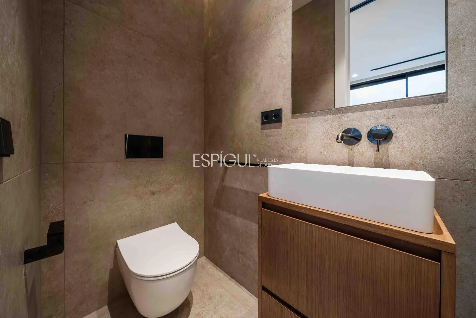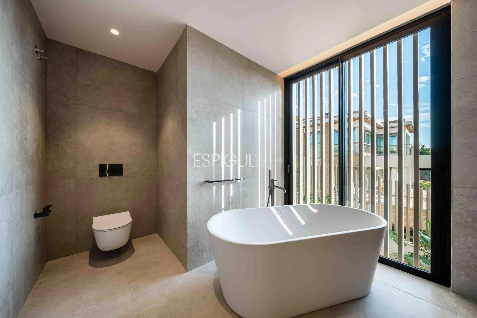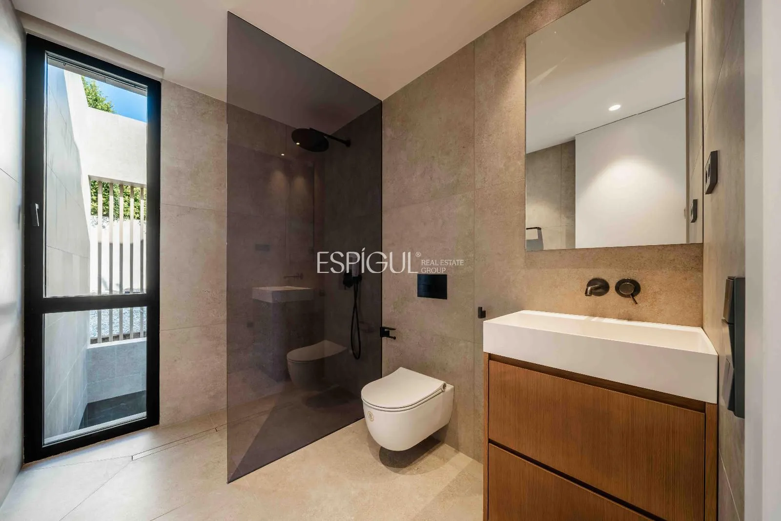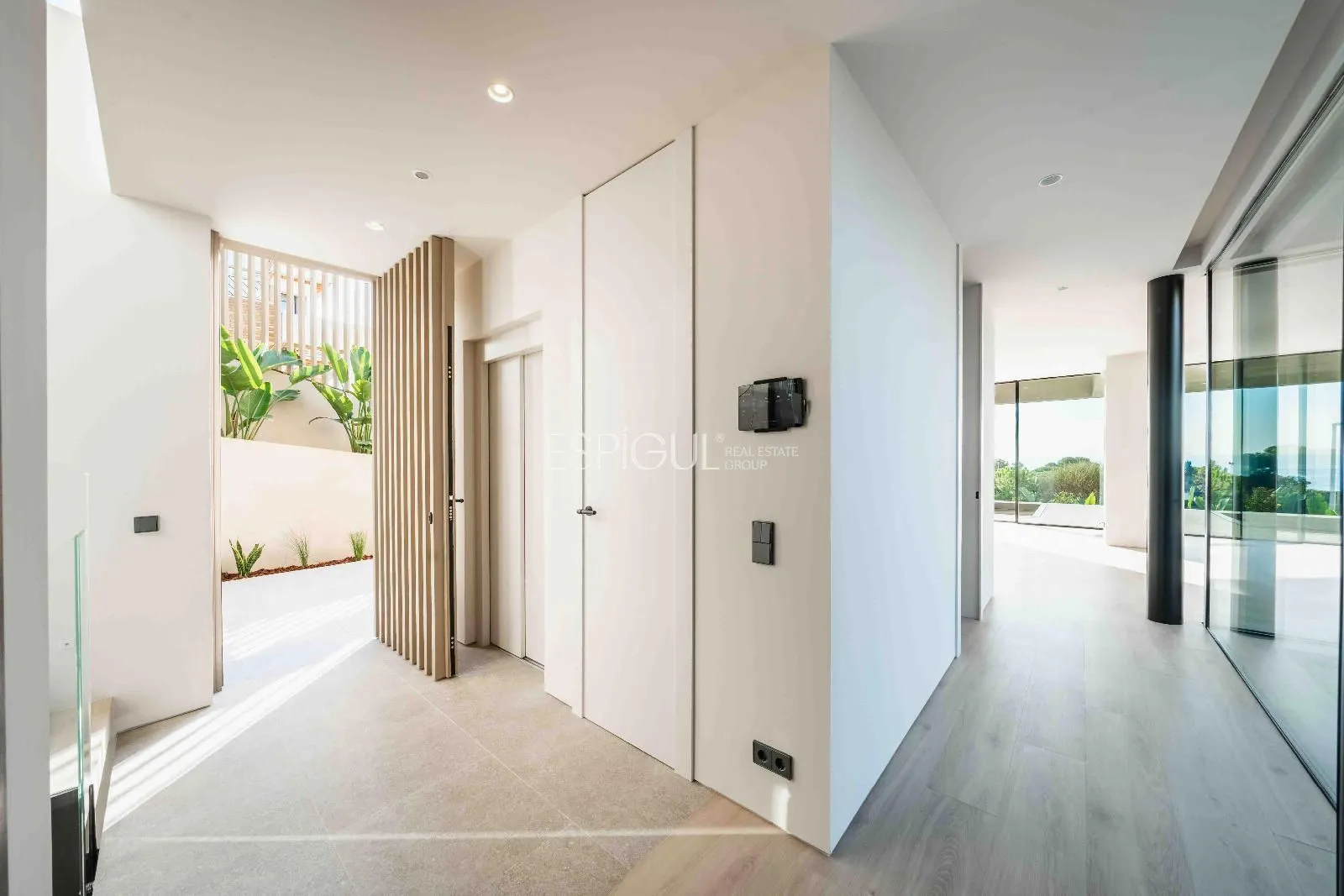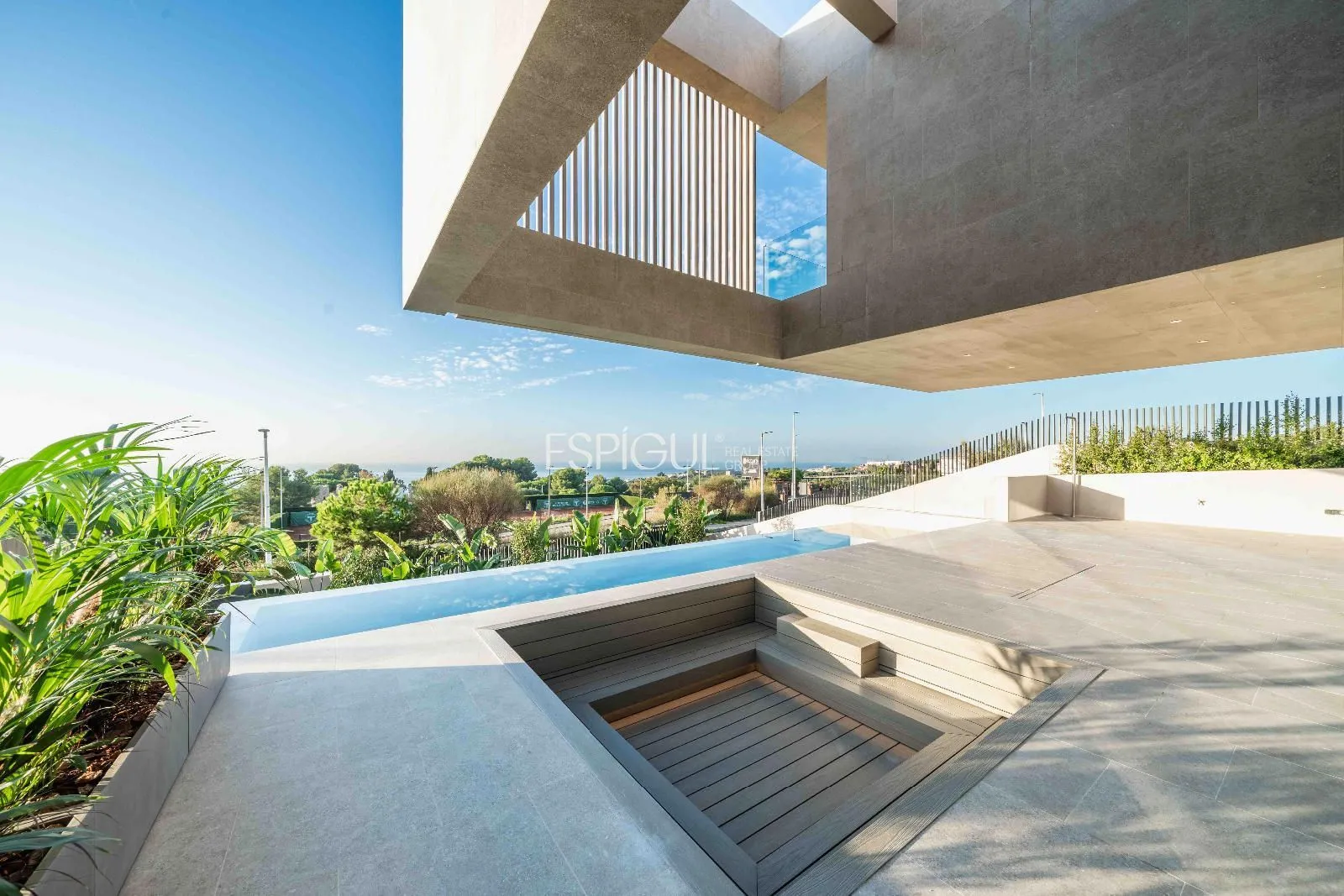 Salón-comedor: Un amplio espacio diáfano de 46 m² con una acogedora chimenea, que se abre a una terraza privada con vistas panorámicas al Mediterráneo. Despierta cada mañana con el mar como telón de fondo y disfruta de los atardeceres más espectaculares.