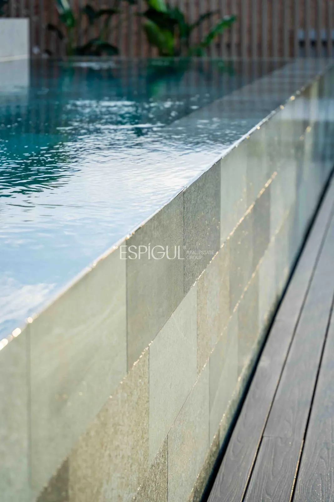 Piscina salina: Relájate en un entorno paradisíaco, rodeado de un jardín meticulosamente cuidado, que convierte cada momento en una experiencia única.