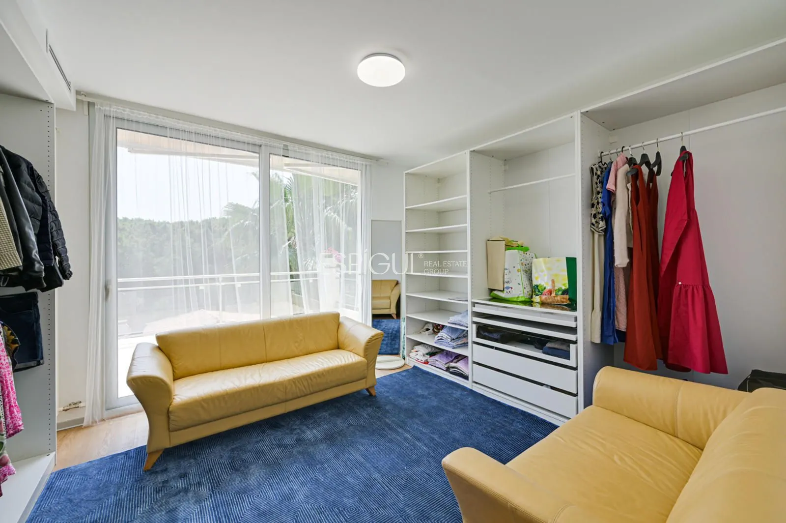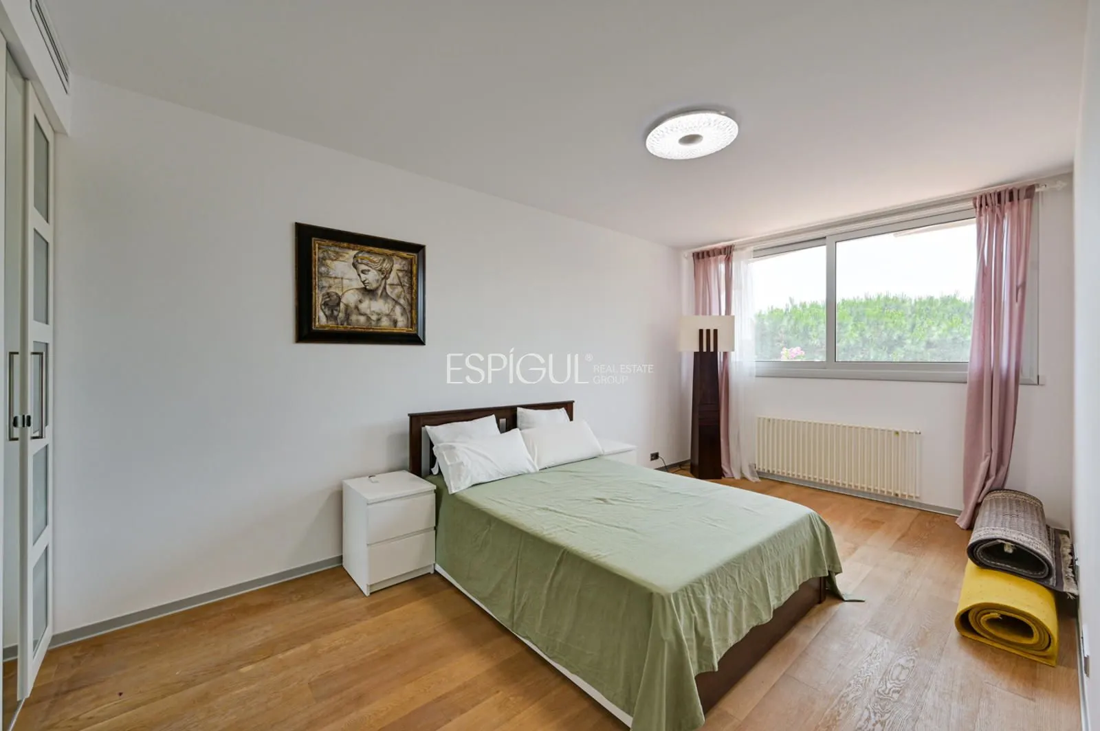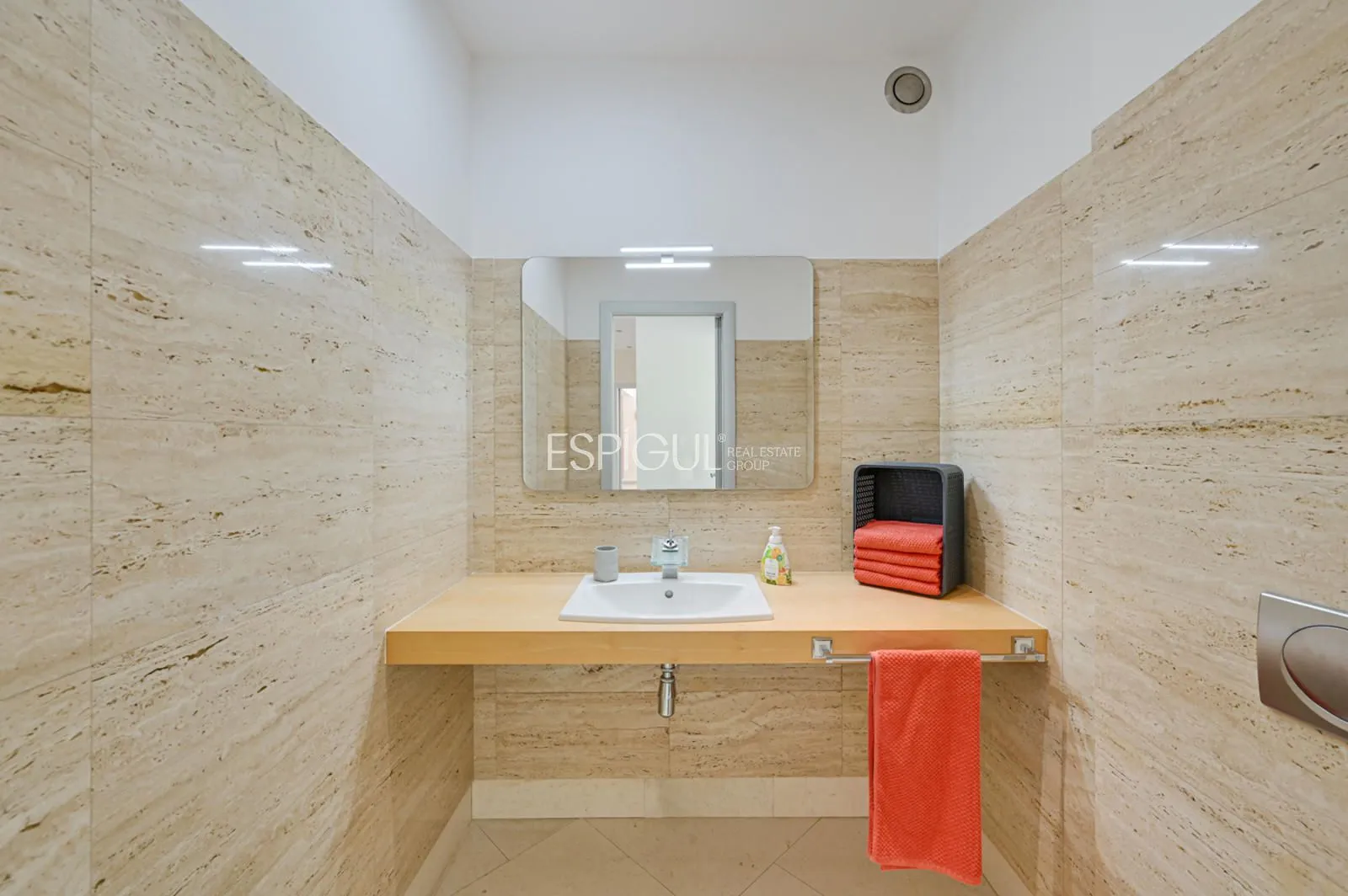 En el nivel superior se sitúa la zona de descanso, presidida por una majestuosa master suite con baño completo, vestidor de ensueño y acceso a una terraza privada con vistas panorámicas al mar. A esta estancia la acompañan otra suite completa, dos habitaciones dobles adicionales (una de ellas actualmente reconvertida en vestidor), y un cuarto de baño completo.