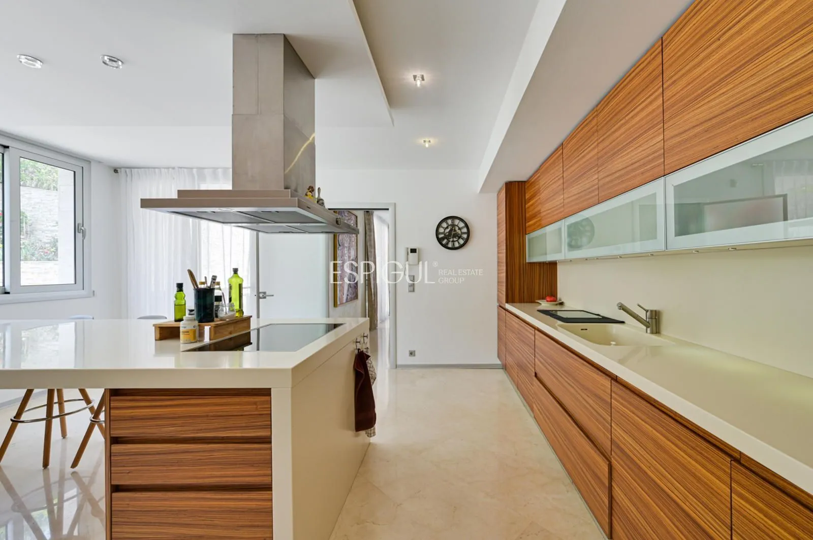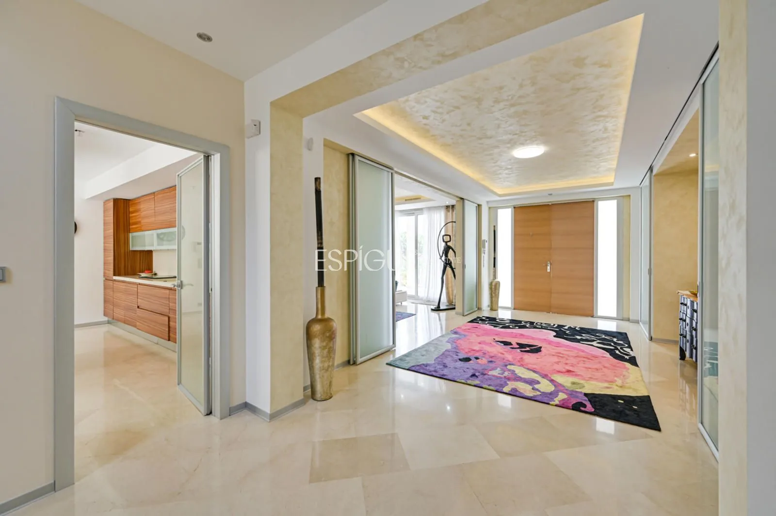 Una casa pensada para quienes valoran la privacidad, la amplitud de espacios, la calidad constructiva y unas vistas incomparables al mar Mediterráneo. La vivienda, de estilo moderno y líneas elegantes, se alza sobre una gran parcela de 1.489 m² completamente ajardinada, con una vegetación cuidada al detalle, diversos espacios para el descanso y el entretenimiento, y una espectacular piscina desbordante con zona solárium, ideal para disfrutar del buen clima todo el año.