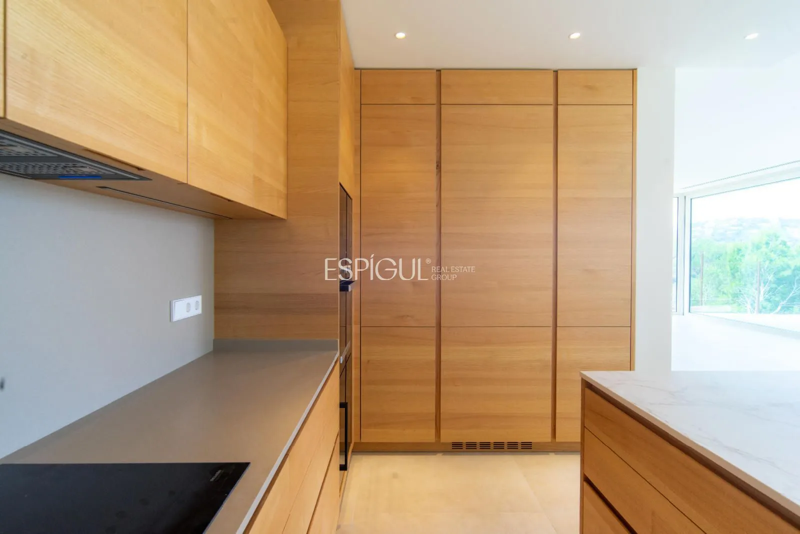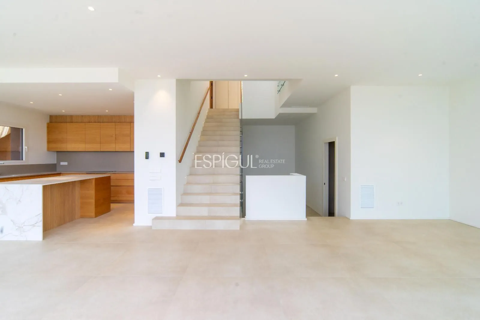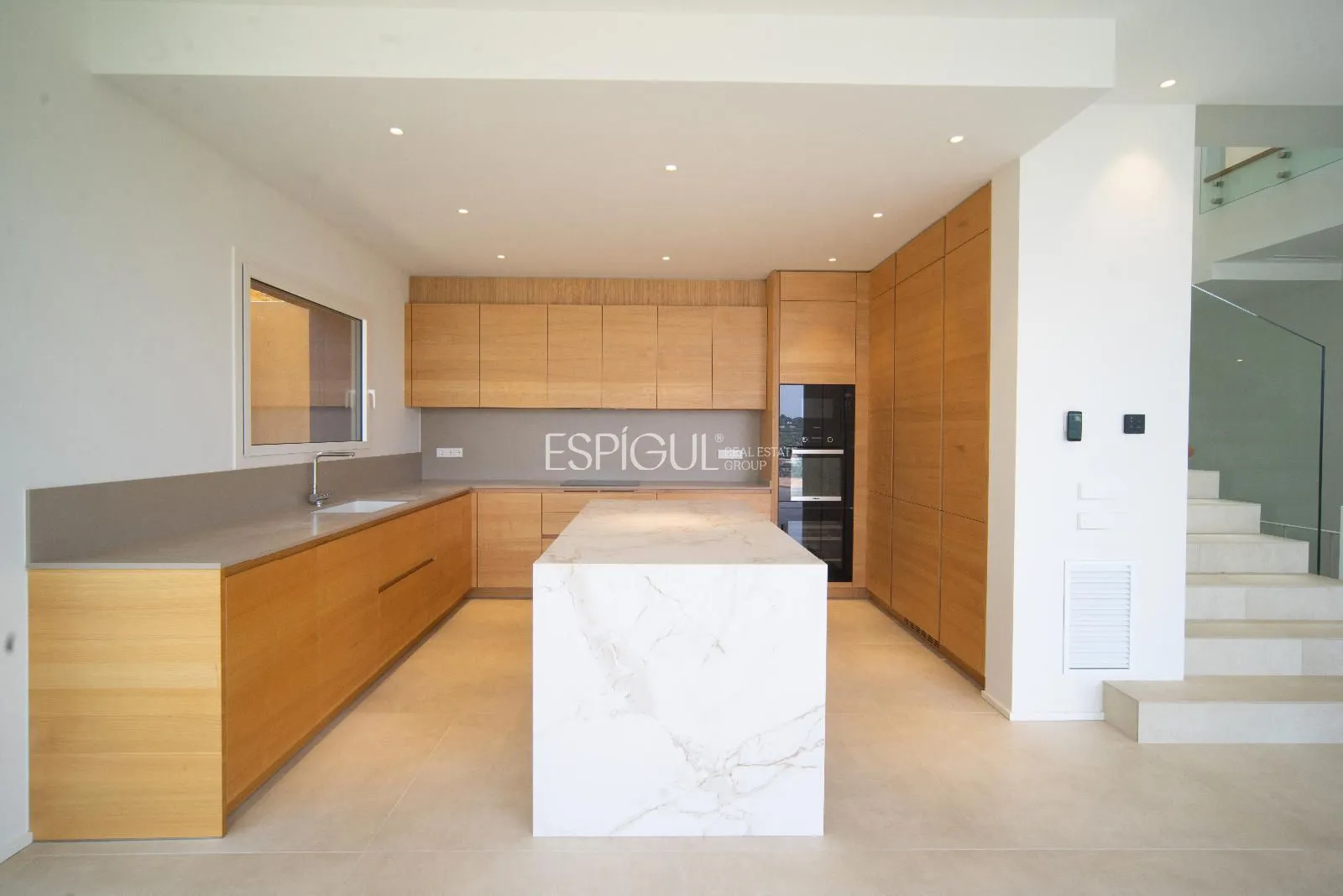 La villa en cuestión, con una superficie construida de 329 m² y asentada en un terreno de 646 m² integrado armoniosamente con el entorno natural, promete una experiencia de vida inigualable. El exuberante jardín con piscina es el lugar perfecto para relajarse y disfrutar de las impresionantes vistas al mar. En la planta principal, una amplia sala de estar con grandes ventanales abre paso a una magnífica terraza, mientras que la cocina de diseño abierto y un elegante aseo completan este nivel.