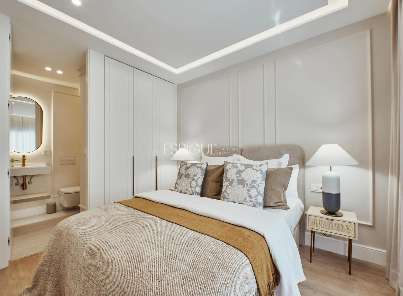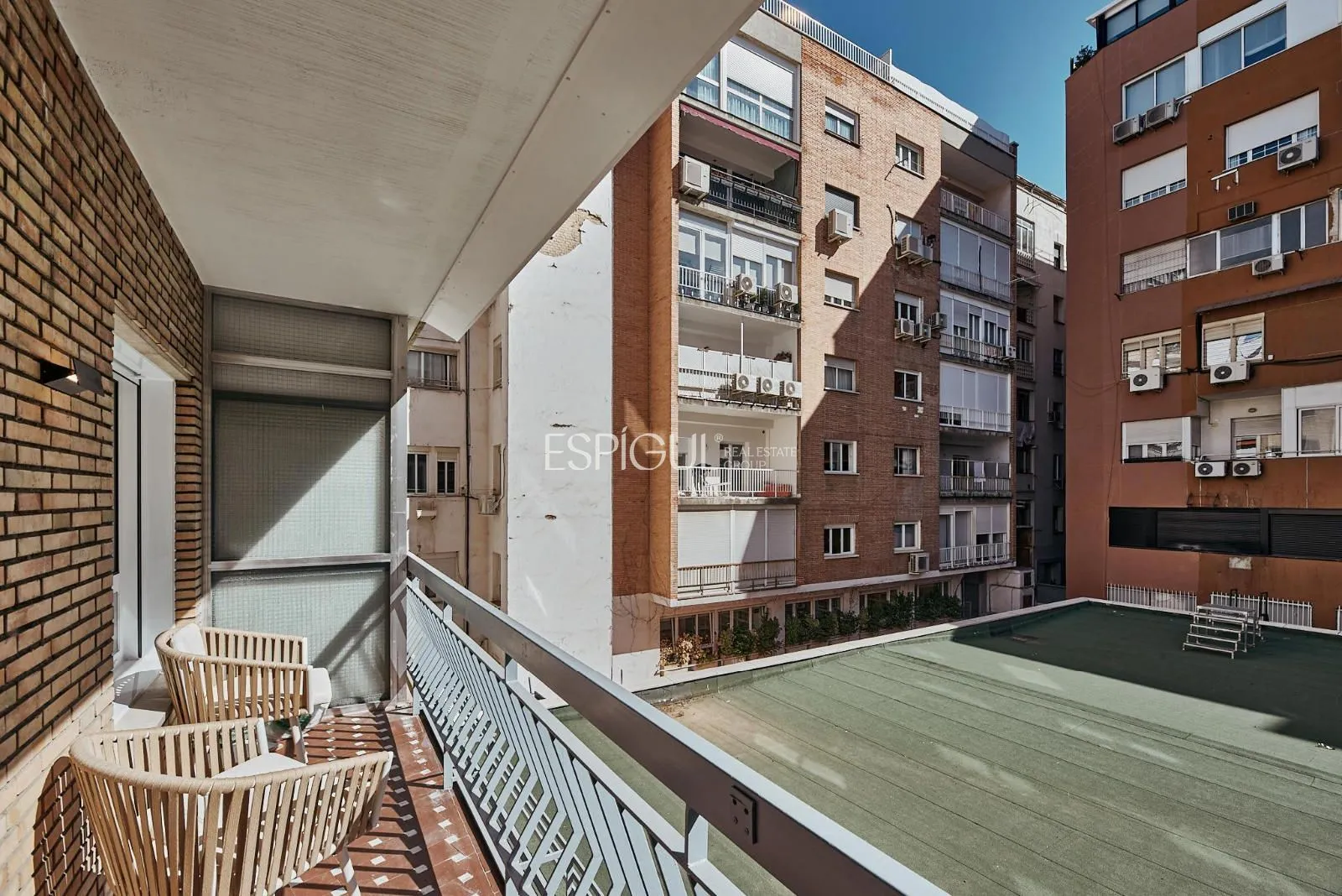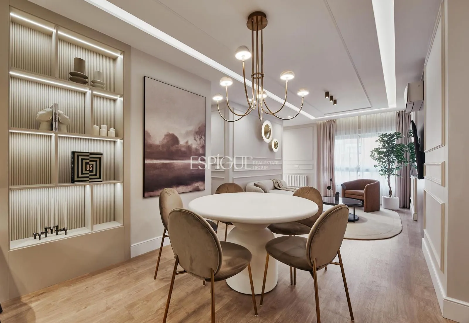 Ubicada en una finca clásica con ascensor y portero físico, esta vivienda interior a patio de manzana combina la tranquilidad del entorno con la elegancia de un diseño contemporáneo. Con 142 m² catastrales en una tercera planta, esta propiedad ha sido completamente reformada con un interiorismo cuidado al detalle, ofreciendo un espacio luminoso, funcional y sofisticado. El acceso a la vivienda se realiza a través de un amplio hall recibidor, que conduce a un salón-comedor espacioso y lleno de claridad, pensado para disfrutar de la comodidad sin renunciar a la estética. La cocina, totalmente equipada con electrodomésticos de alta gama y menaje completo, destaca por su diseño práctico y moderno.