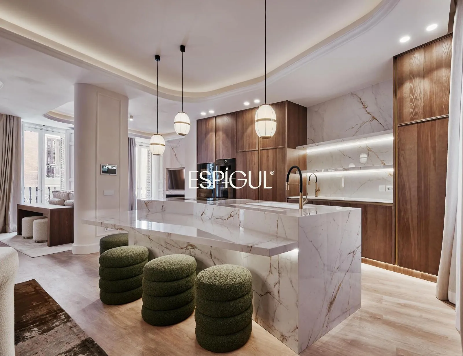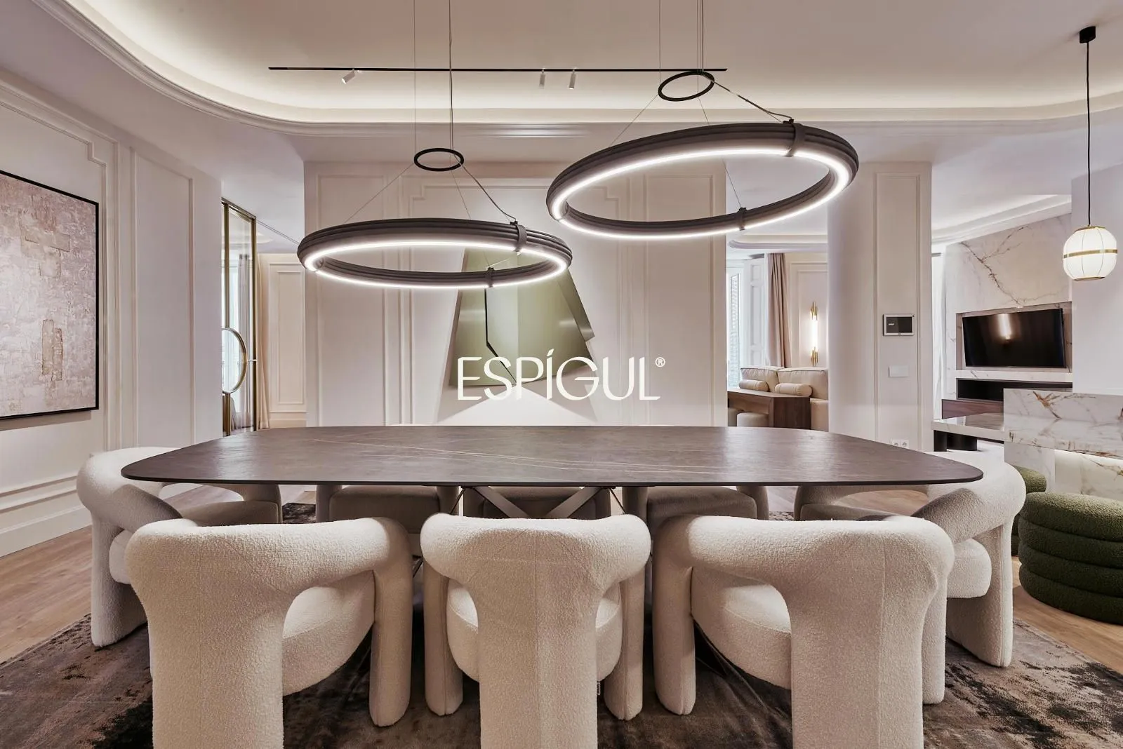 La distribution comprend quatre pièces spacieuses, idéales pour les familles ou pour être transformées en bureaux, salles de réunion ou studios. Quatre chambres permettent de créer des espaces privés et des zones communes fluides, optimisant la circulation entre les pièces. Cinq salles de bains, à usage privé et partagé, apportent confort et efficacité pour les utilisateurs et les visiteurs. L’ampleur des pièces facilite la création de différents environnements sans renoncer à la fonctionnalité qu’exige une propriété de ces dimensions.