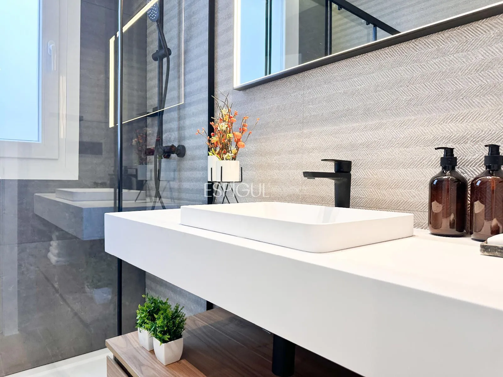 2 salles de bain complètes + toilettes pour invités, conçues avec des matériaux de qualité supérieure.