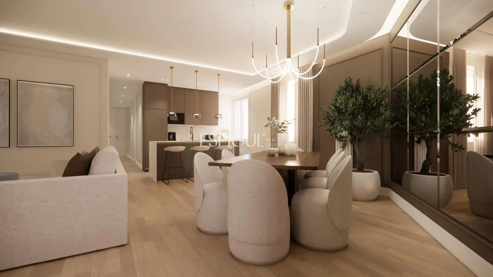 Situé sur la prestigieuse Calle Juan Bravo, au cœur du quartier de Salamanca, cet appartement de luxe exclusif incarne l’harmonie parfaite entre l’architecture madrilène classique et le design contemporain. Situé au troisième étage d’un immeuble prestigieux, ce logement de 127 m² a été soigneusement rénové et décoré pour offrir une expérience résidentielle haut de gamme.