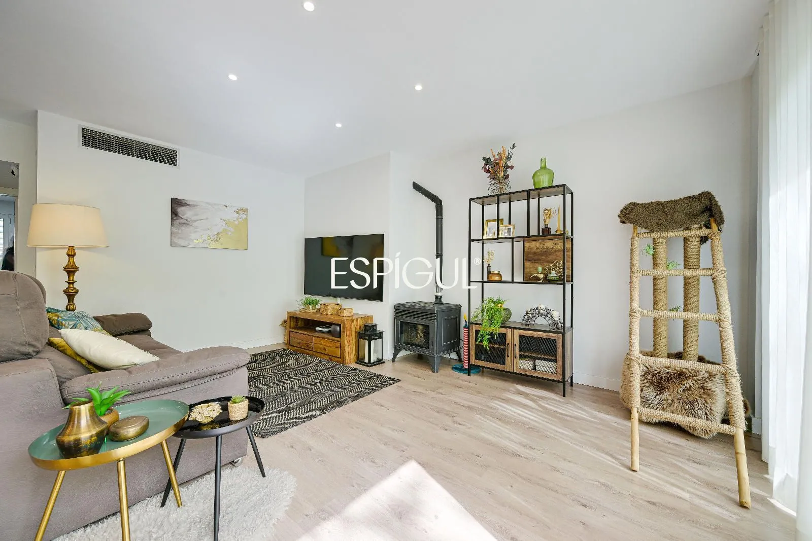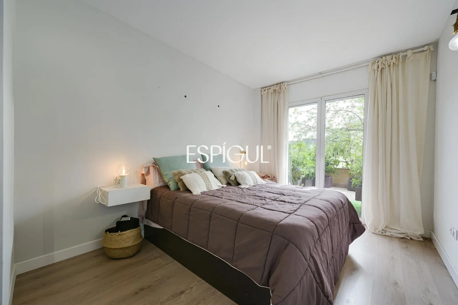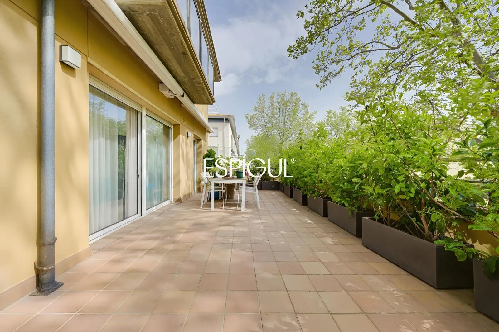 Le cœur du logement est son salon-salle à manger accueillant, baigné d’une abondante lumière naturelle, qui se connecte directement à une grande terrasse privée. Cet espace extérieur est parfait pour profiter du climat méditerranéen, que ce soit pour se détendre au soleil, partager des repas en plein air ou créer un agréable coin détente dans un environnement tranquille.
