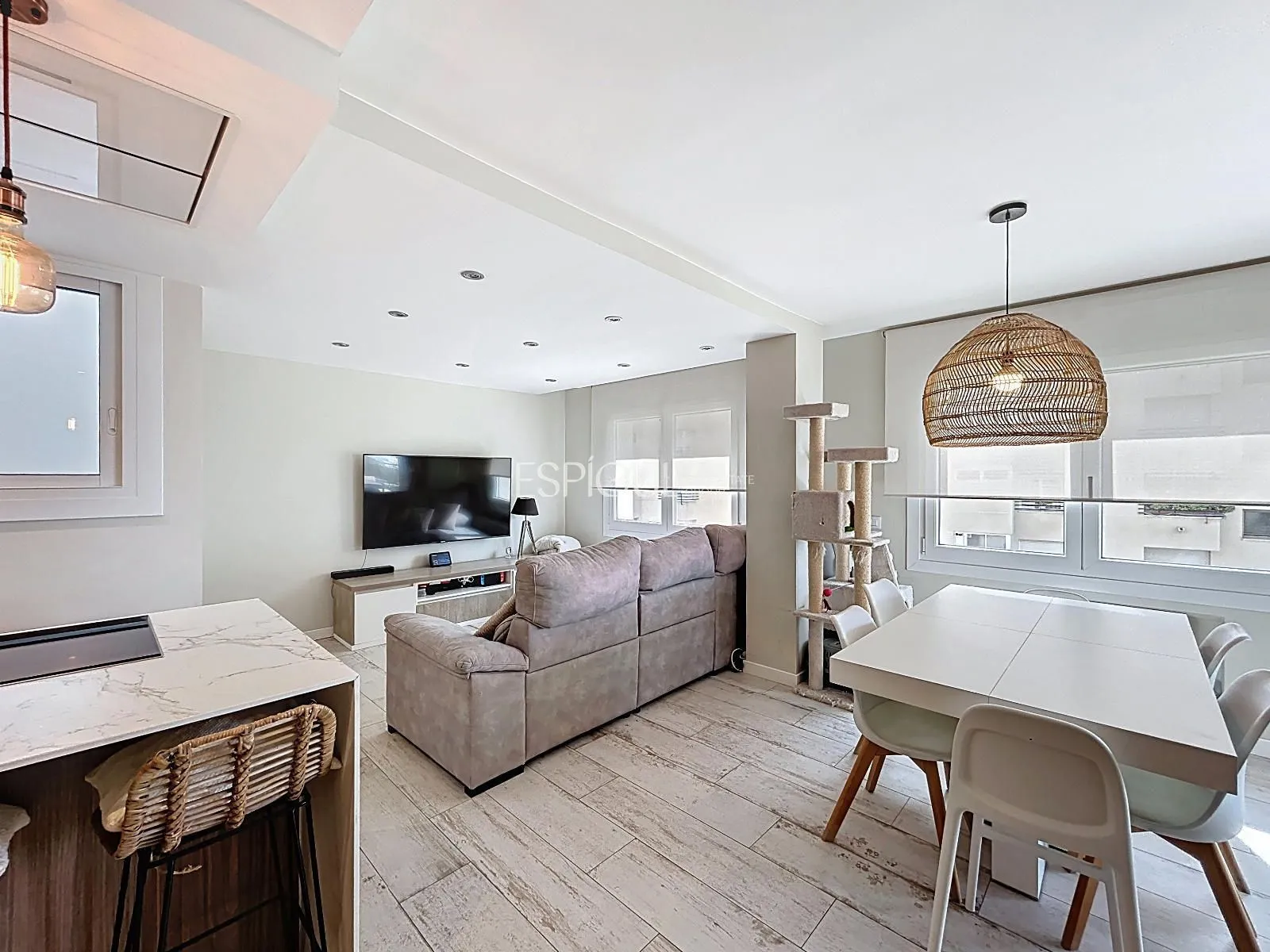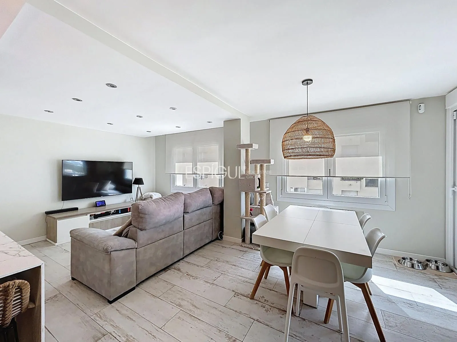 Un logement moderne, fonctionnel et très lumineux, conçu pour offrir un confort maximal. La cuisine design est équipée d’appareils électroménagers Neff et s’intègre à la salle à manger, créant un espace idéal pour profiter en famille ou entre amis. Les nouveaux sols en grès et les fenêtres en PVC avec volets automatiques apportent une touche contemporaine, tandis que la climatisation avec pompe à chaleur Mitsubishi garantit le bien-être tout au long de l’année.