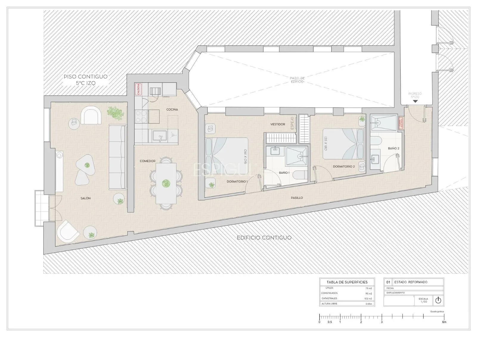 Située au 102 de la rue Hermosilla, au cœur du quartier de Salamanca – zone Goya, cette élégante propriété représente l’harmonie parfaite entre design contemporain et fonctionnalité. Située au cinquième étage d’un immeuble avec ascenseur, elle bénéficie d’une luminosité exceptionnelle qui rehausse chaque détail de sa rénovation soignée.