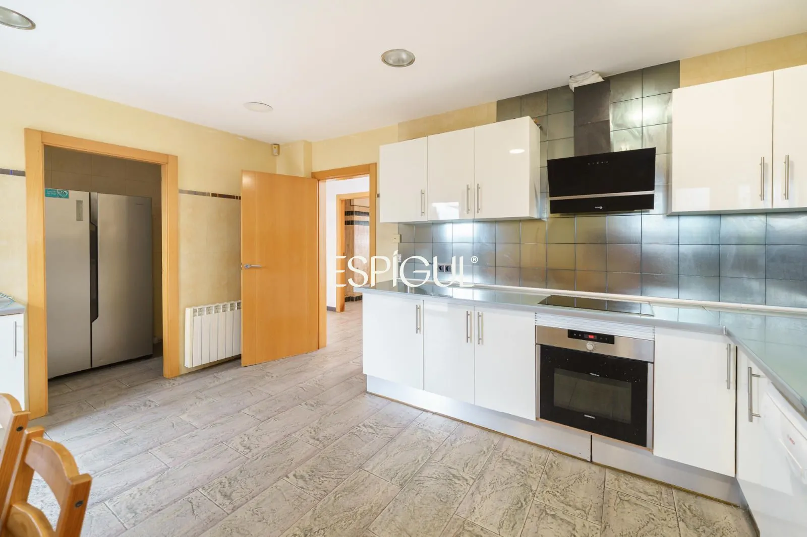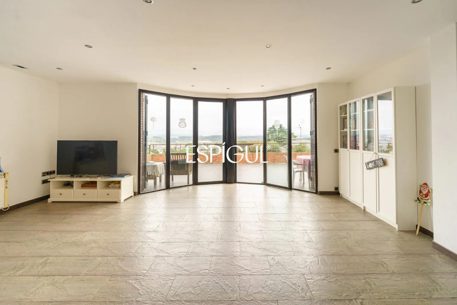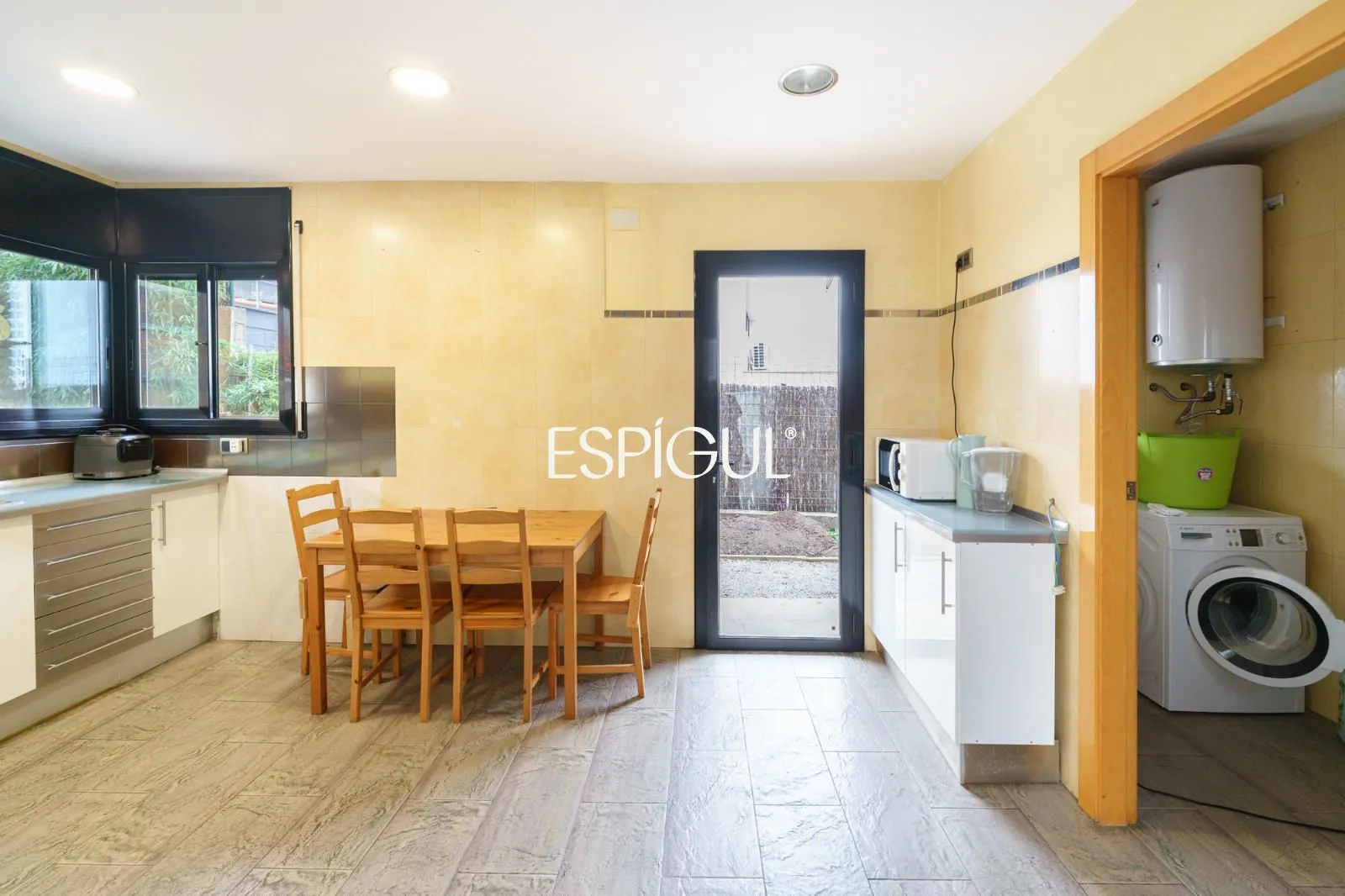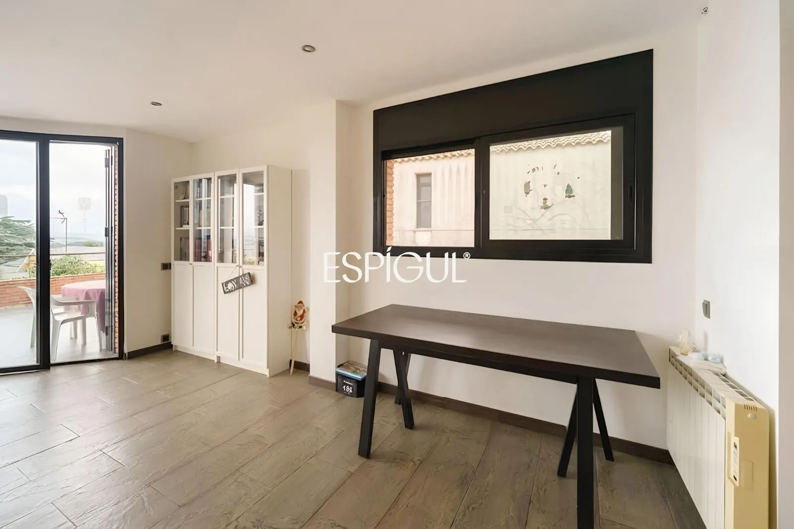 Nous accédons au rez-de-chaussée, où se développe la zone de jour. Sur la gauche, nous trouvons une spacieuse cuisine-salle à manger, parfaite pour le quotidien et pour profiter en famille, qui dispose également d’un espace supplémentaire pratique de type cellier ou buanderie, offrant une grande fonctionnalité. Ensuite, un généreux salon-salle à manger s’ouvre, un espace chaleureux et accueillant, idéal aussi bien pour la détente que pour les réceptions, avec un accès direct à une agréable terrasse offrant de belles vues sur la montagne, apportant lumière naturelle et connexion avec l’environnement.