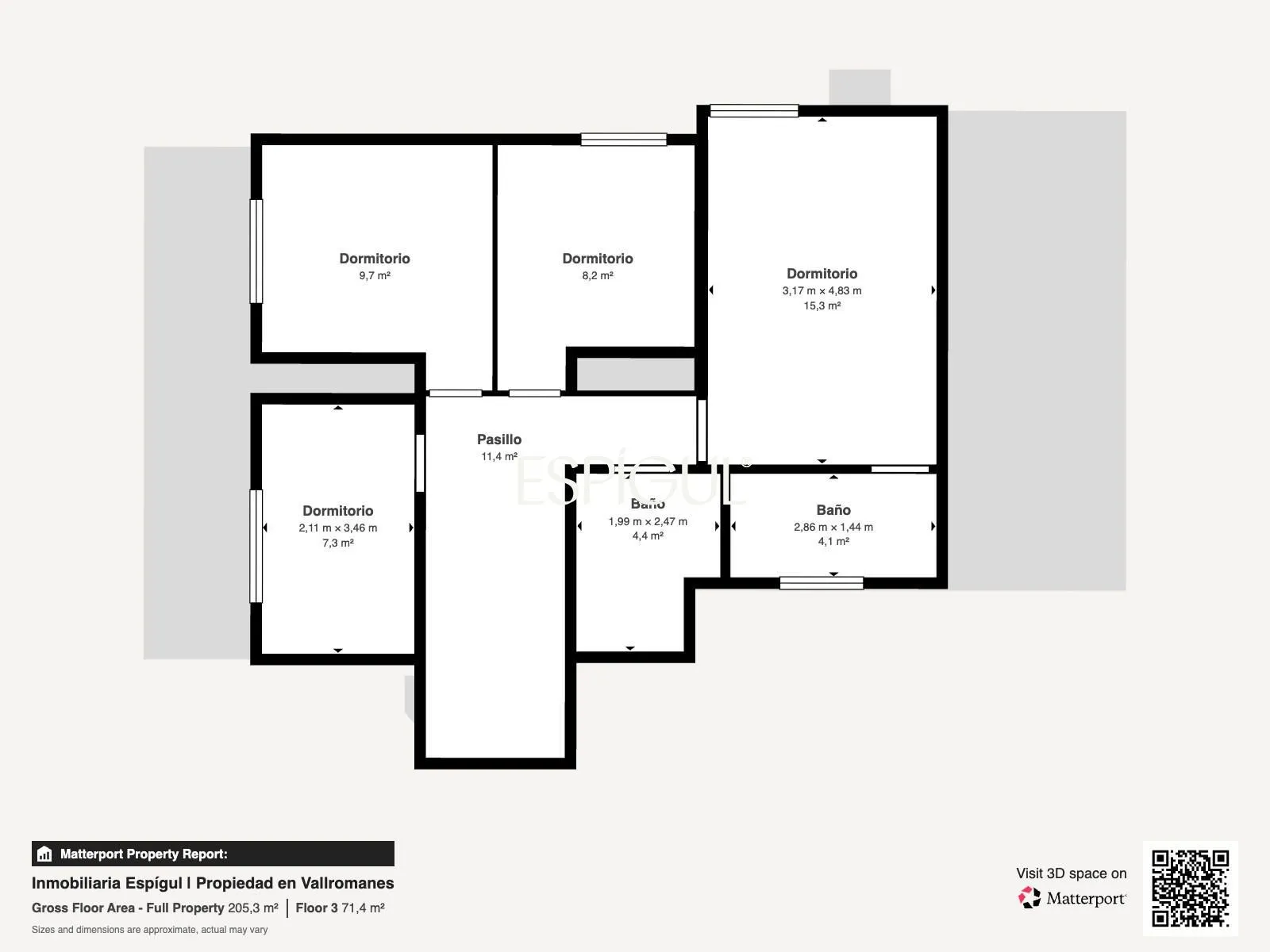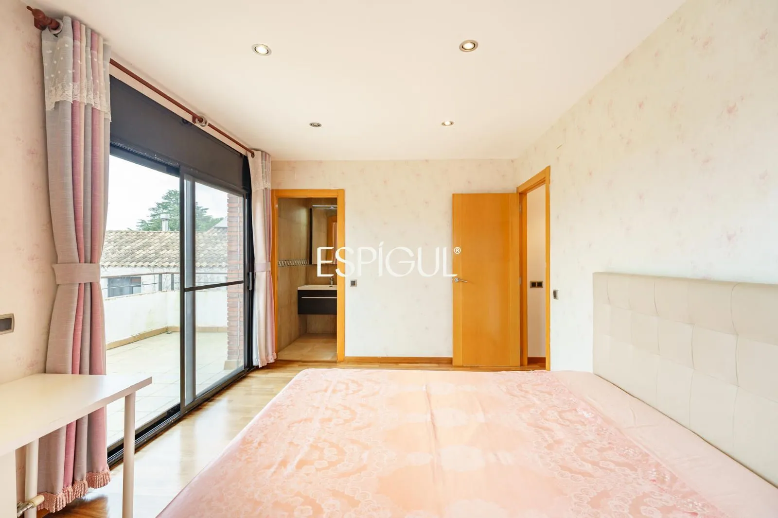 Au premier étage se trouve la zone nuit, conçue pour garantir intimité et confort. Nous y trouvons trois chambres supplémentaires qui partagent une salle de bain complète, ainsi que la chambre principale en suite, avec sa propre salle de bain privée, créant un espace intime et fonctionnel.