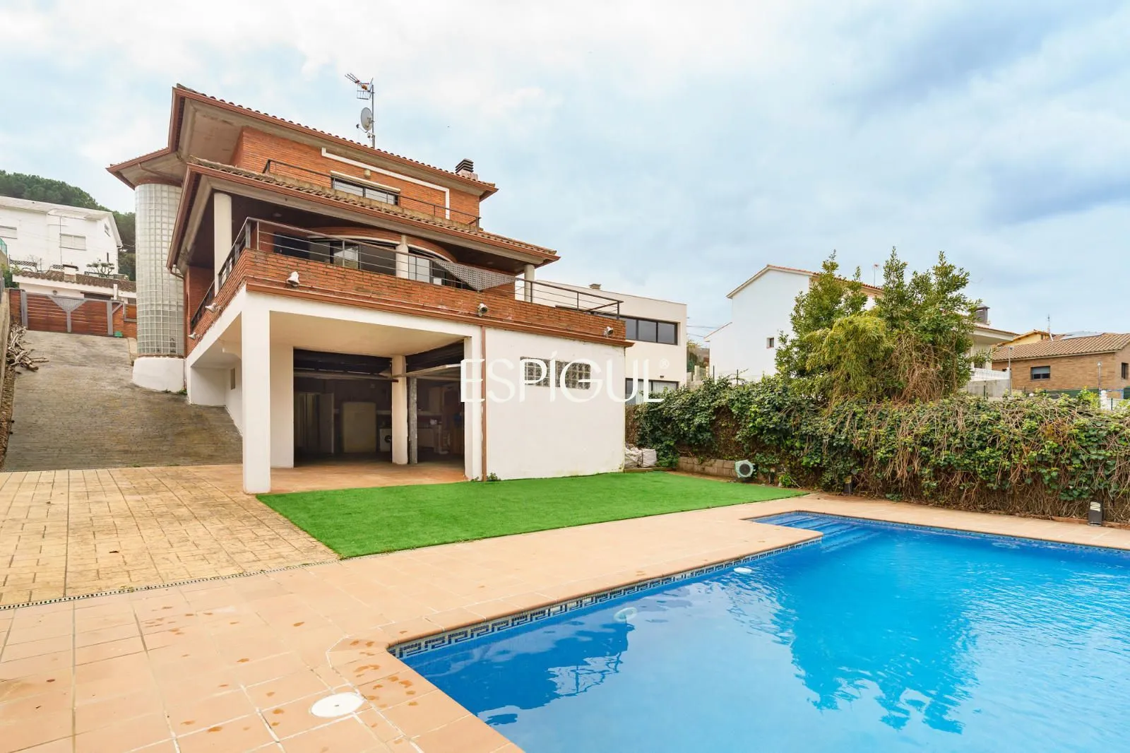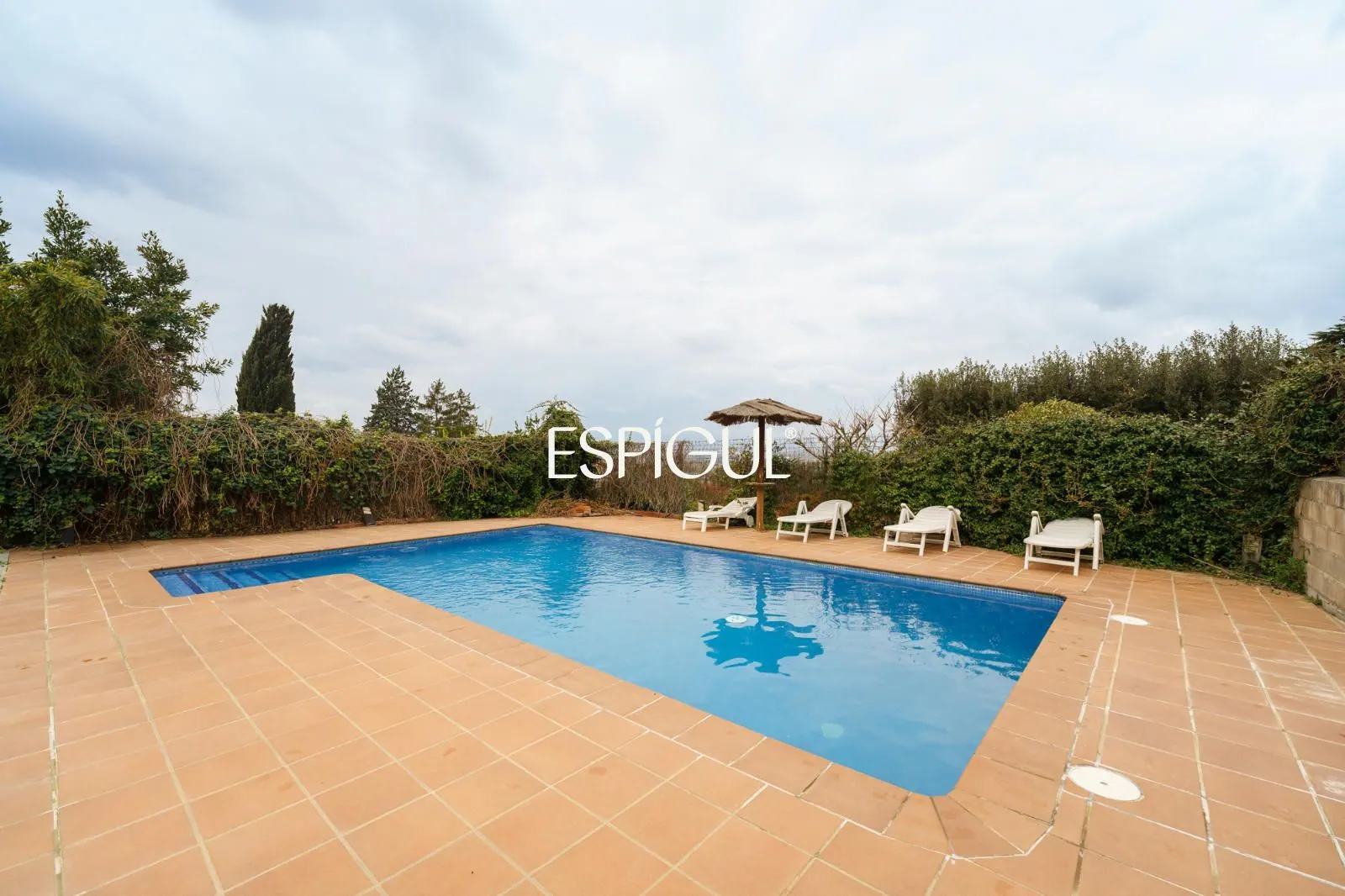 À l’extérieur, la propriété offre un cadre idéal pour profiter du style de vie méditerranéen. Le jardin dispose d’une piscine privée et d’une vaste zone pavée, parfaite pour organiser des réceptions en plein air, des zones de détente ou simplement se relaxer dans une ambiance tranquille et privée.
