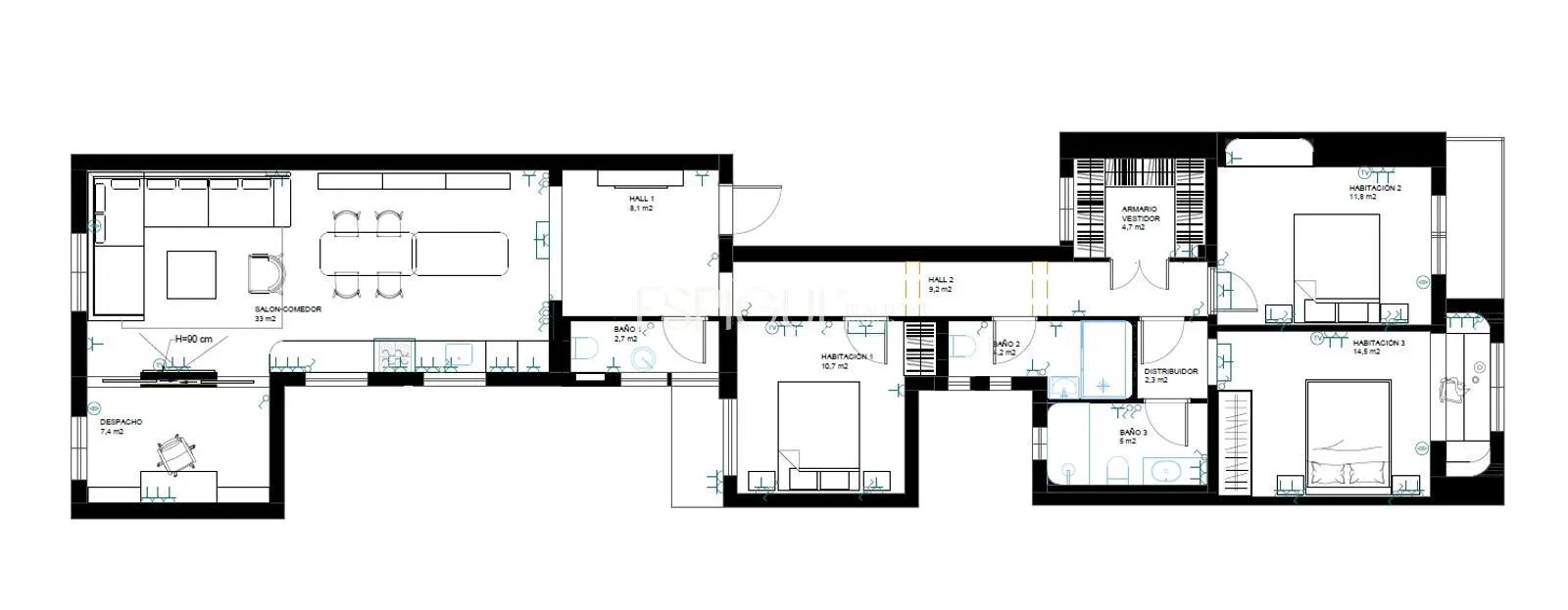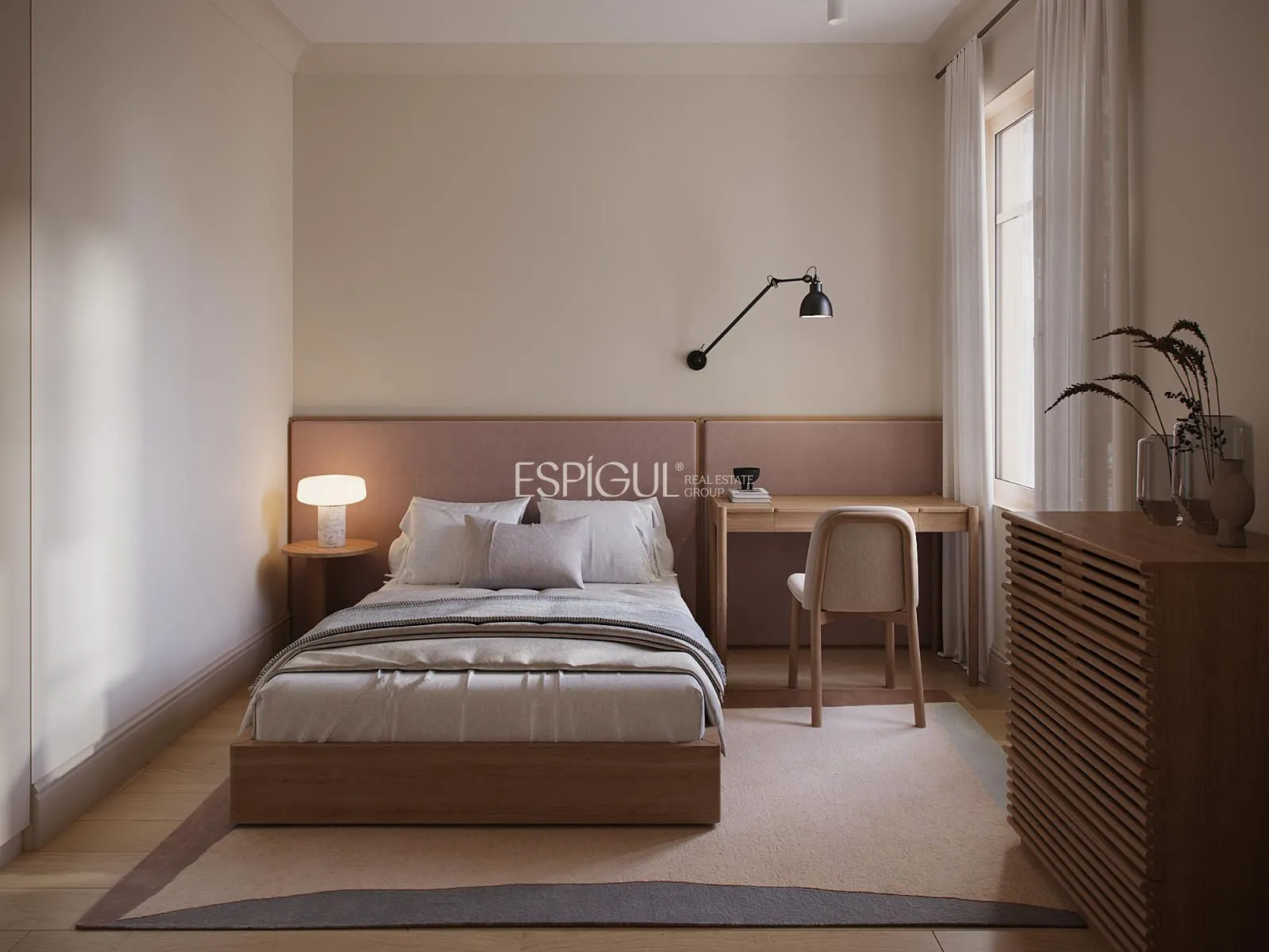Le logement s’organise en quatre pièces : 3 chambres doubles, dont une avec balcon privé donnant sur l’Avenida Sarrià, une suite sophistiquée, une chambre double et une quatrième pièce polyvalente, idéale comme bureau pour le travail ou les études à la maison.