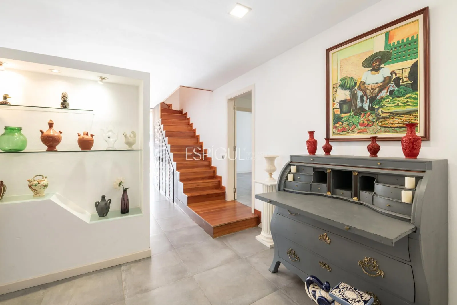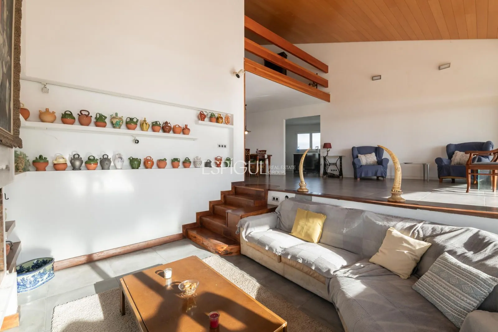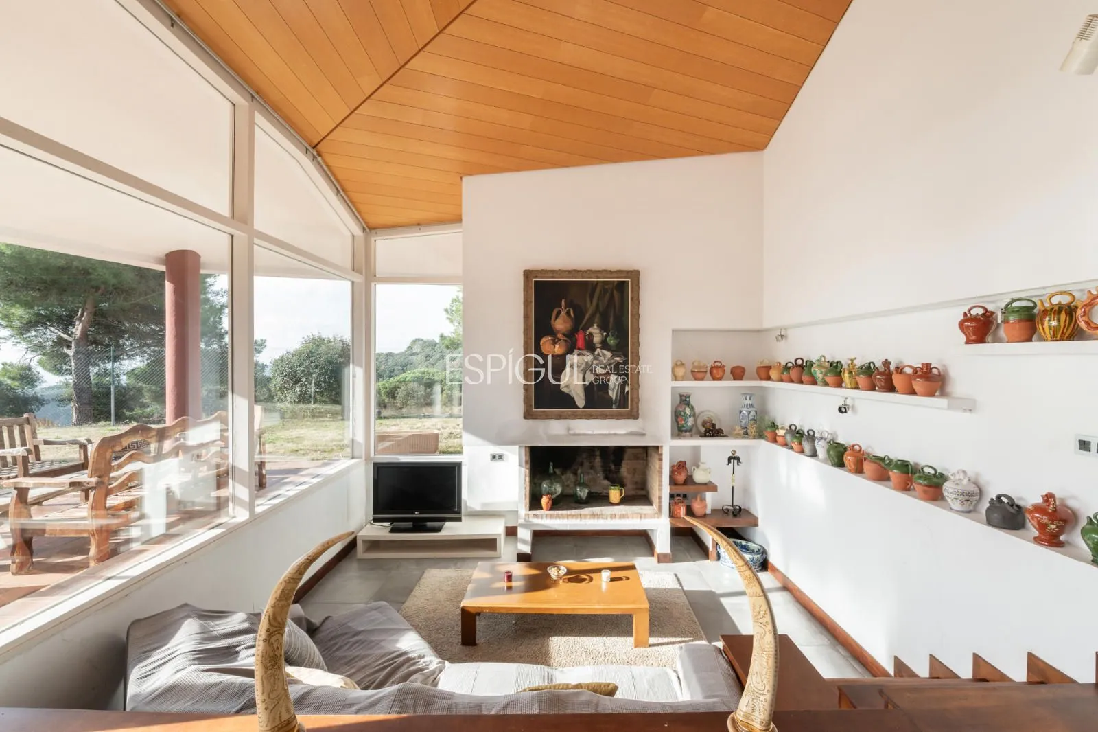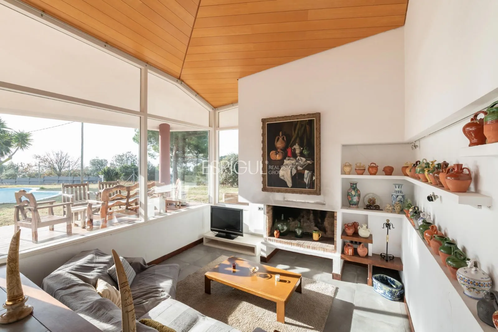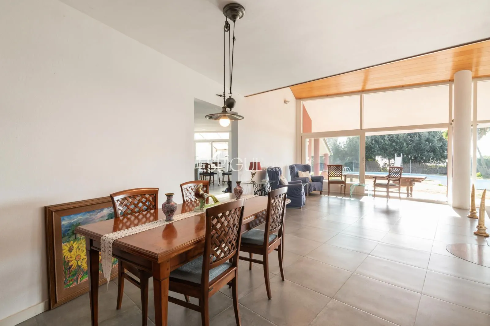 La propriété : Située sur une impressionnante parcelle plate de 2 491 m², cette maison de 403 m² construits se distingue par son caractère et son ampleur. Le cœur de la maison est un spectaculaire salon avec de hauts plafonds et des poutres en bois noble, inondé de lumière naturelle grâce à ses grandes baies vitrées qui se connectent directement au jardin et à la piscine privée.