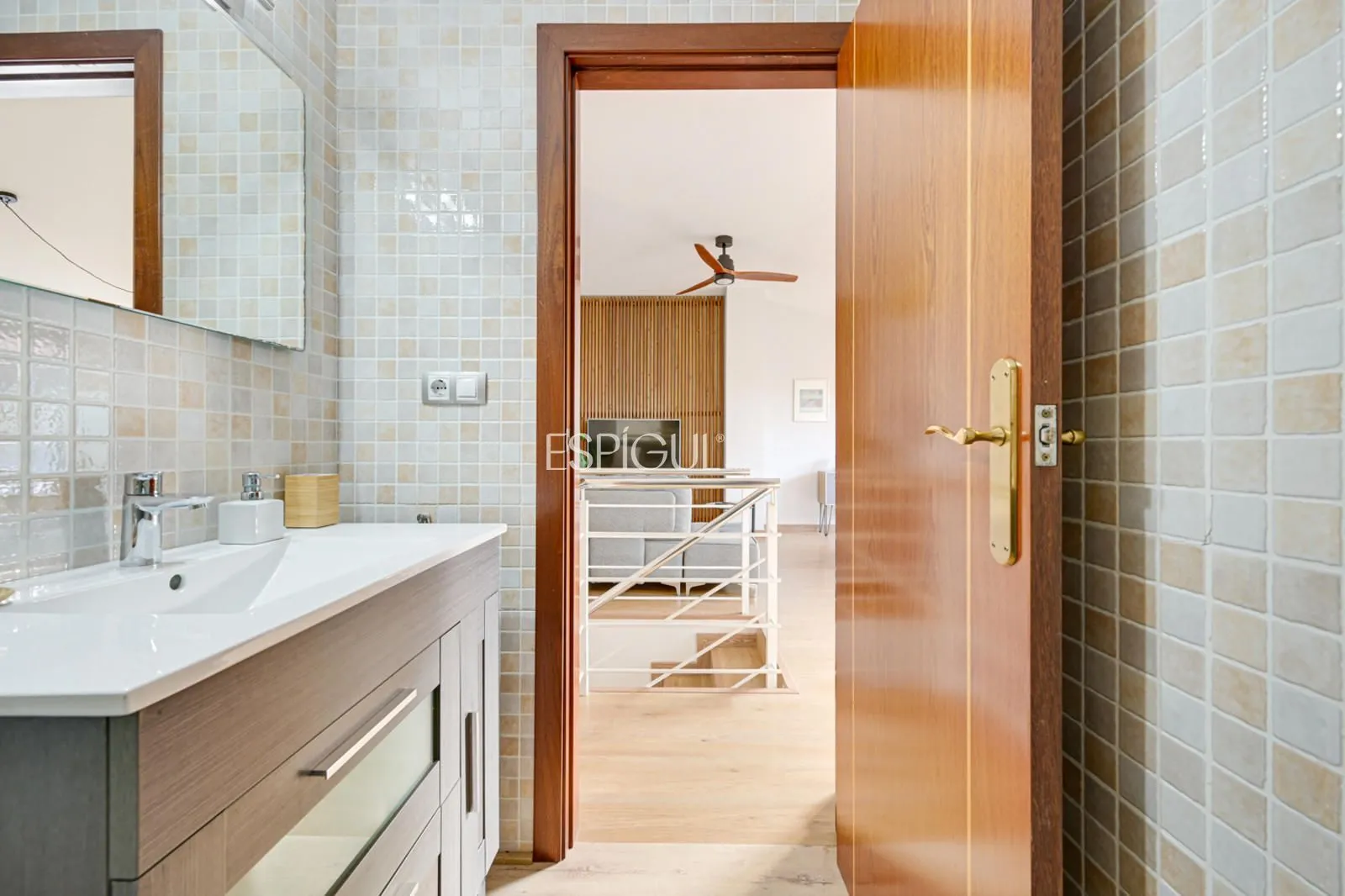 À l’étage supérieur se trouve la zone jour avec un salon-salle à manger accueillant et lumineux avec accès direct à la terrasse, un espace unique qui offre une intimité absolue et devient le cœur de la maison. La cuisine indépendante, fonctionnelle et parfaitement distribuée, communique avec une zone d’eau pratique. Cet étage dispose également d’une salle de bain complète avec douche.