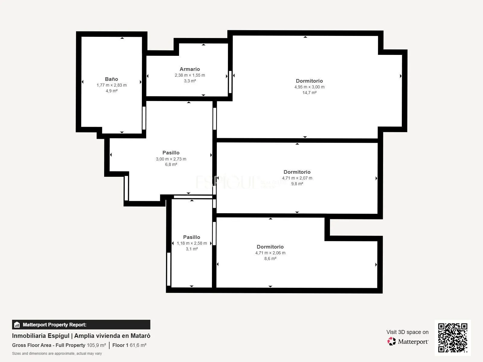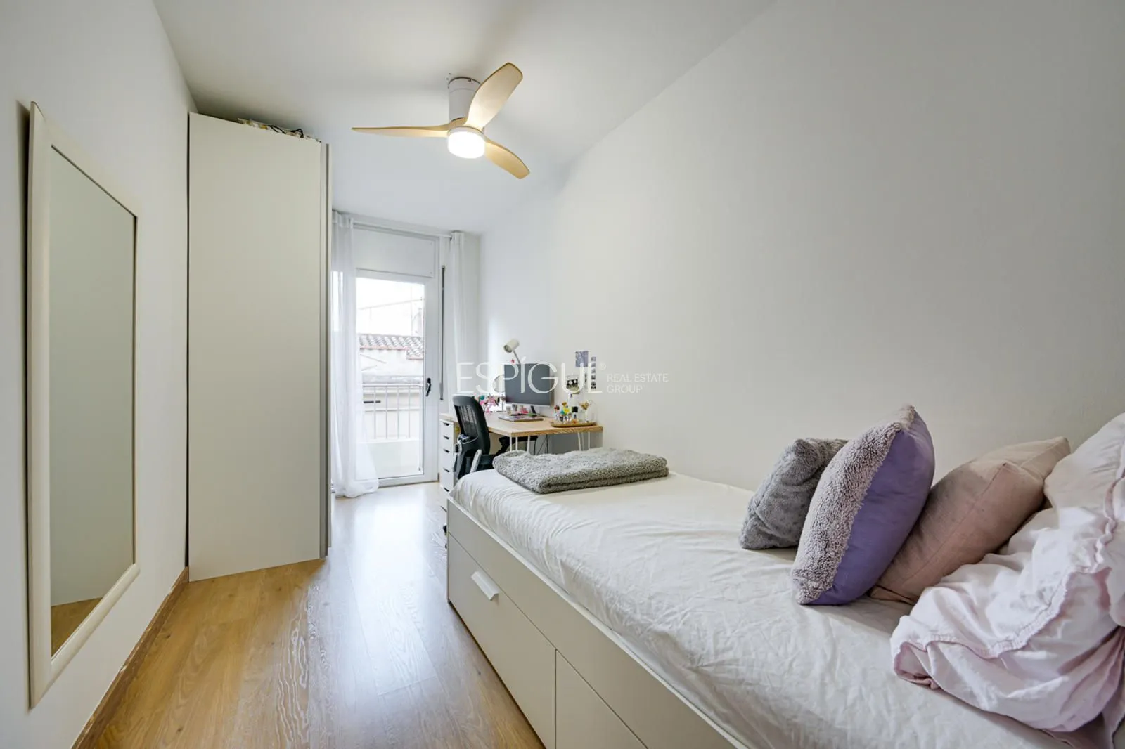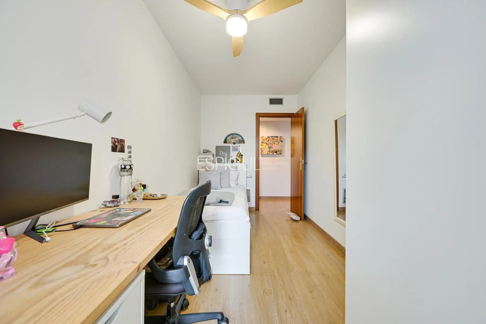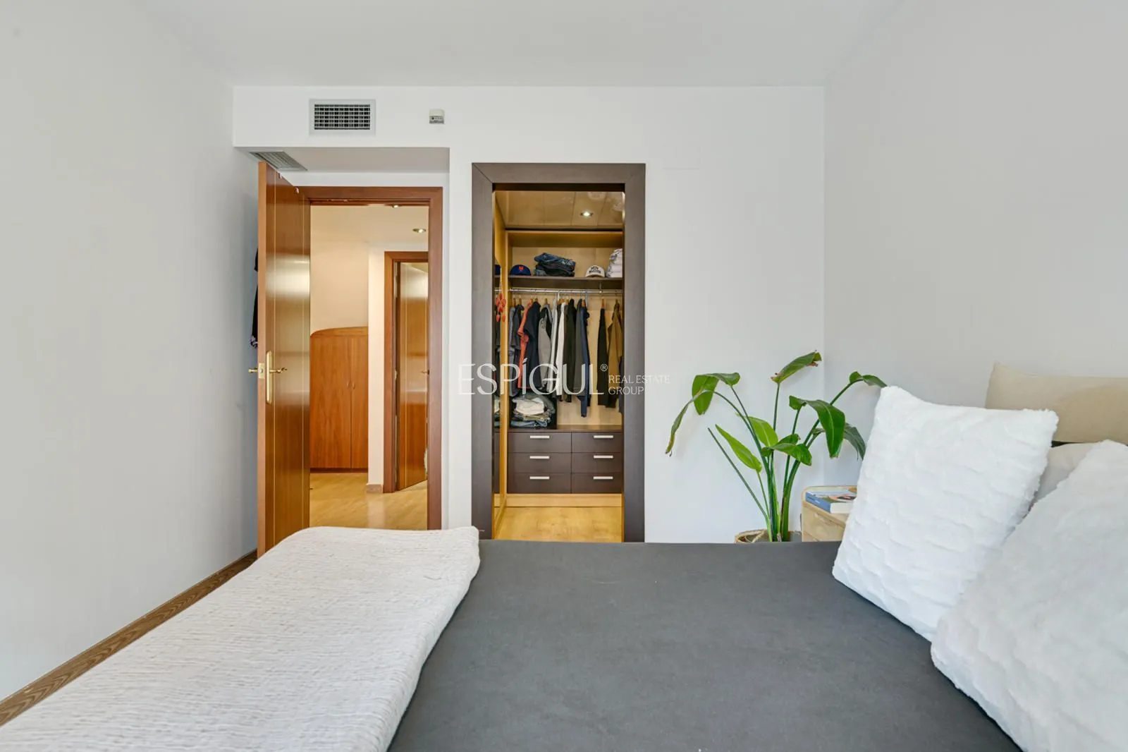 L’entrée se trouve à l’étage qui abrite la zone nuit, où se répartissent trois grandes chambres doubles, toutes extérieures et avec balcon privé, qui apportent luminosité et caractère à chaque pièce. L’une des chambres dispose d’un dressing indépendant, avec la possibilité de le transformer en salle de bain pour devenir une suite élégante. Cet étage dispose également d’une salle de bain complète de dimensions généreuses et équipée d’une baignoire.