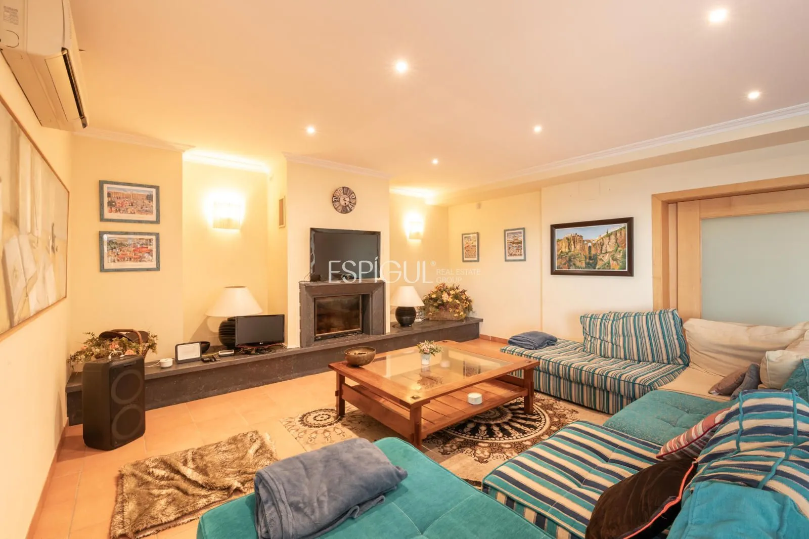 Parmi ses prestations, on distingue l’ascenseur (du sous-sol au premier étage), des panneaux solaires installés il y a deux ans, la climatisation par splits, le chauffage par le sol, des sols en céramique au rez-de-chaussée et du parquet au premier étage et à la mezzanine, des menuiseries en aluminium avec moustiquaires et des armoires encastrées dans toutes les chambres. L’approvisionnement en eau provient d’un puits privé, renforçant l’autosuffisance du domaine.
