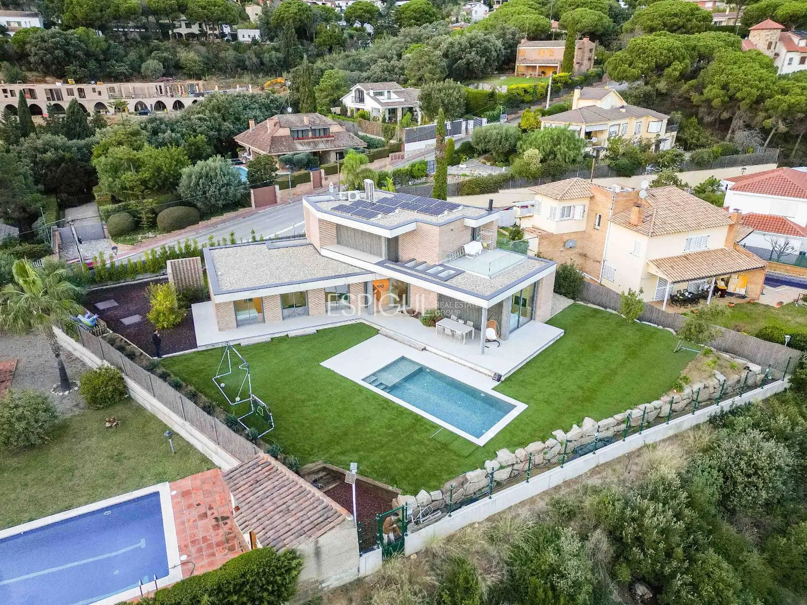 Представляем впечатляющий дом современного дизайна, построенный в 2023 году, который сочетает в себе элегантность, комфорт и передовые технологии. Расположенный на участке площадью 889 м², этот дом площадью 350 м² имеет непревзойденный панорамный вид на Маресме и Средиземное море.