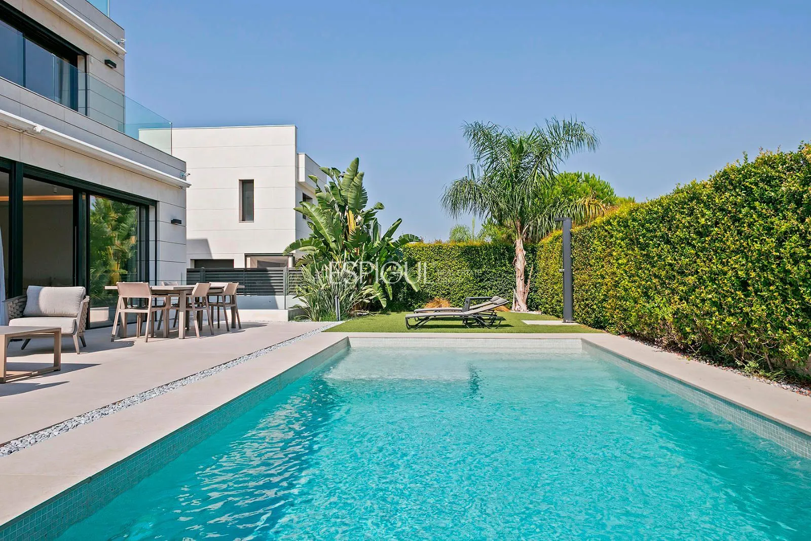 Внешний вид — одна из его главных привлекательных черт: красивый частный сад с дизайнерским бассейном, окруженный террасами, идеально подходит для наслаждения средиземноморским климатом круглый год, как в моменты отдыха, так и во время светских встреч.