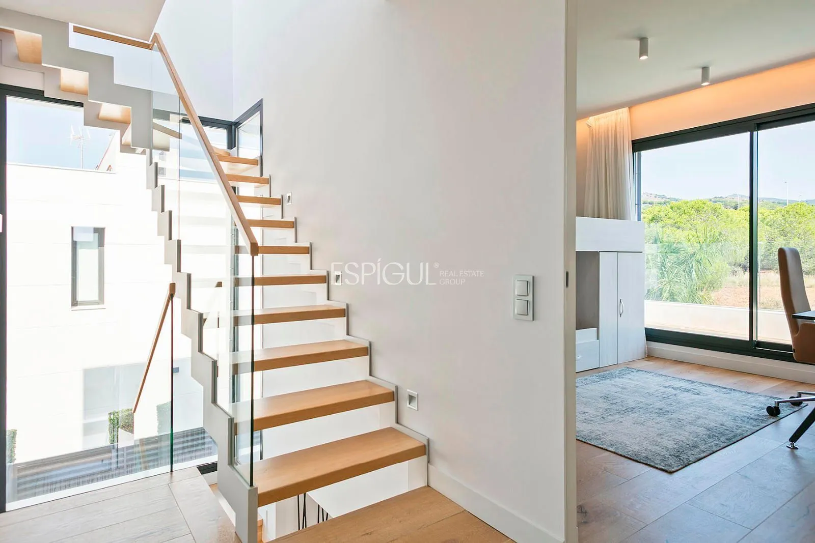 Высококачественная отделка, полы с подогревом, современная система кондиционирования, комплексная система безопасности, лестница из массива дуба и пункт зарядки для электромобилей. Южная ориентация и естественный свет в течение всего дня.