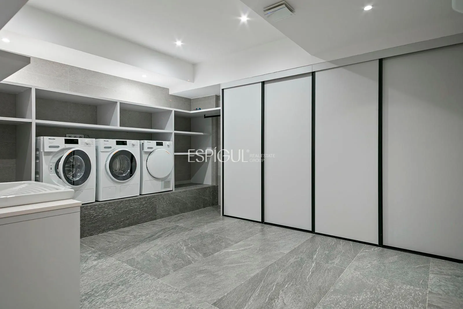 Дом площадью 355 м², построенный на участке 400 м², предлагает 6 комнат (несколько люксов) и пять ванных комнат, большие окна от пола до потолка и захватывающий вид на море. Открытая гостиная-столовая интегрирована с открытыми террасами, создавая плавный и светлый переход между интерьером и экстерьером. Премиальная кухня, оборудованная высококачественной бытовой техникой, прачечная и отдельная кладовая.
