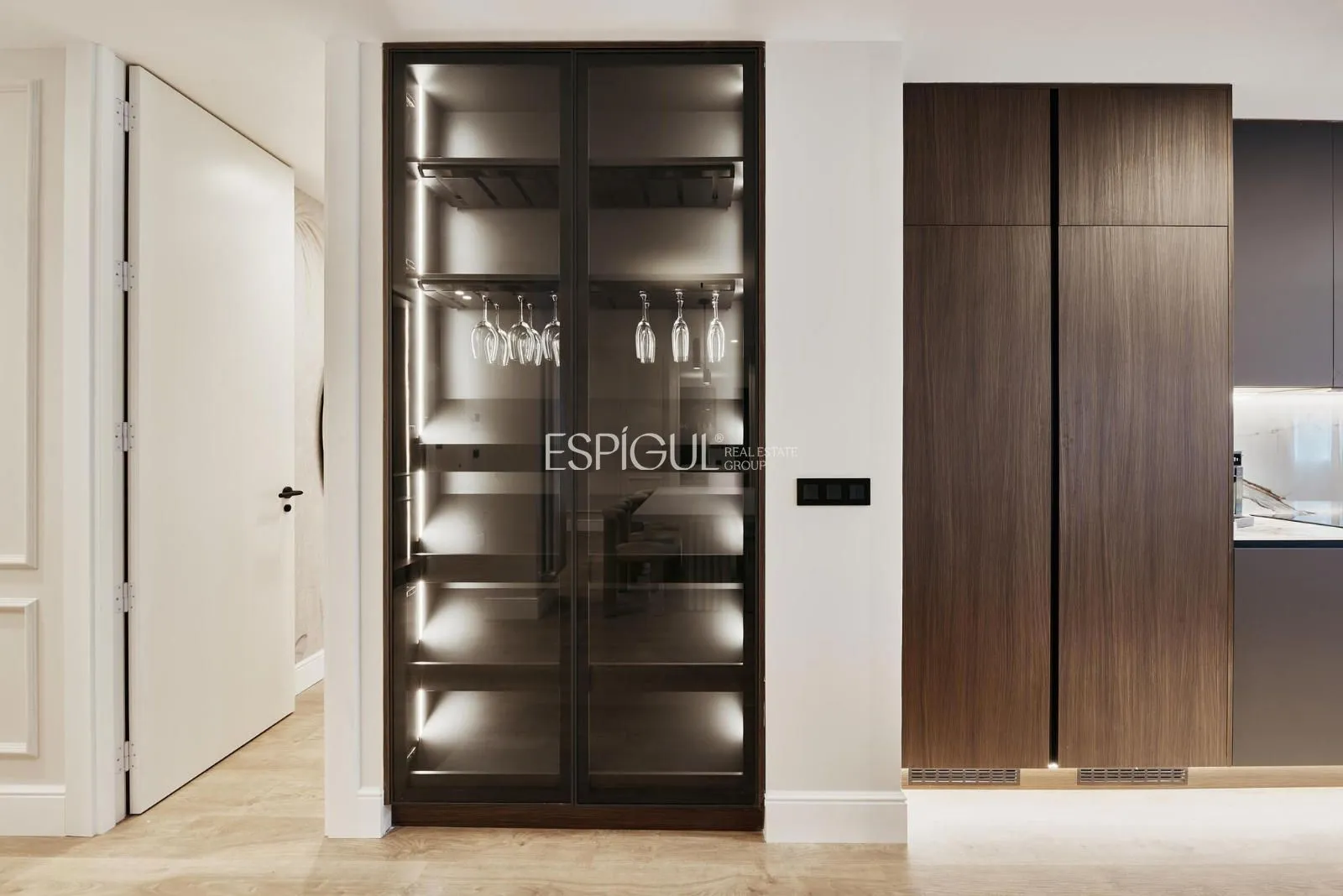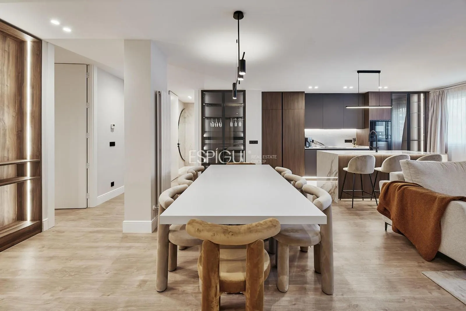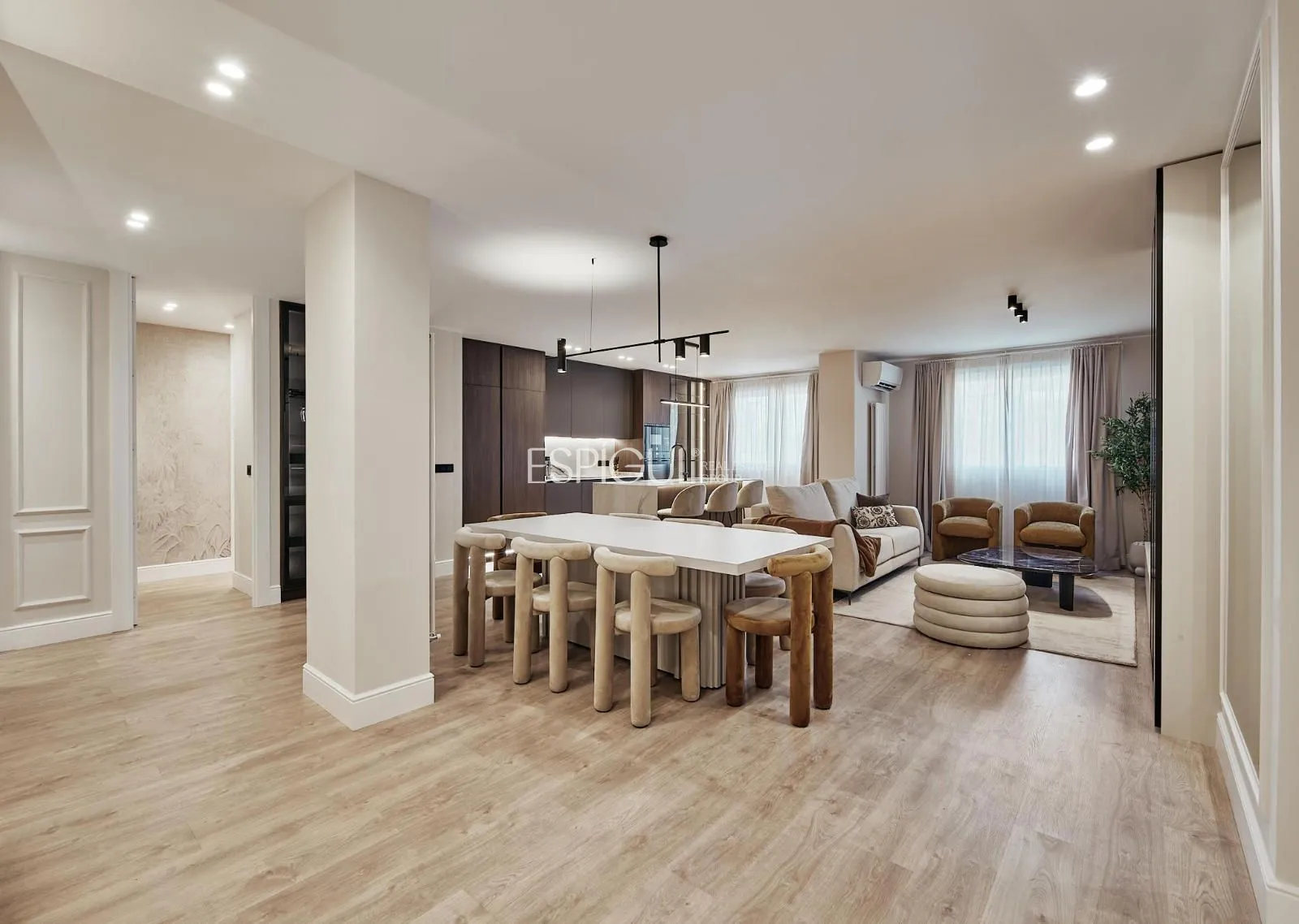 На одной из самых представительных улиц района Саламанка представлена эта впечатляющая отремонтированная квартира, расположенная в классическом здании 1928 года, которое сохранило архитектурное очарование той эпохи и предлагает удобства современной жизни: лифт, консьерж, гараж и кладовая. Квартира, ориентированная на юг, наслаждается естественным светом в течение всего дня, создавая теплую и элегантную атмосферу, которая подчеркивает каждую деталь проекта. Планировка была разработана для оптимизации пространства и функциональности, обеспечивая идеальную гармонию между эстетикой и комфортом.