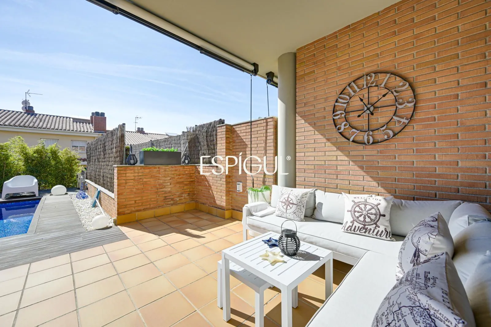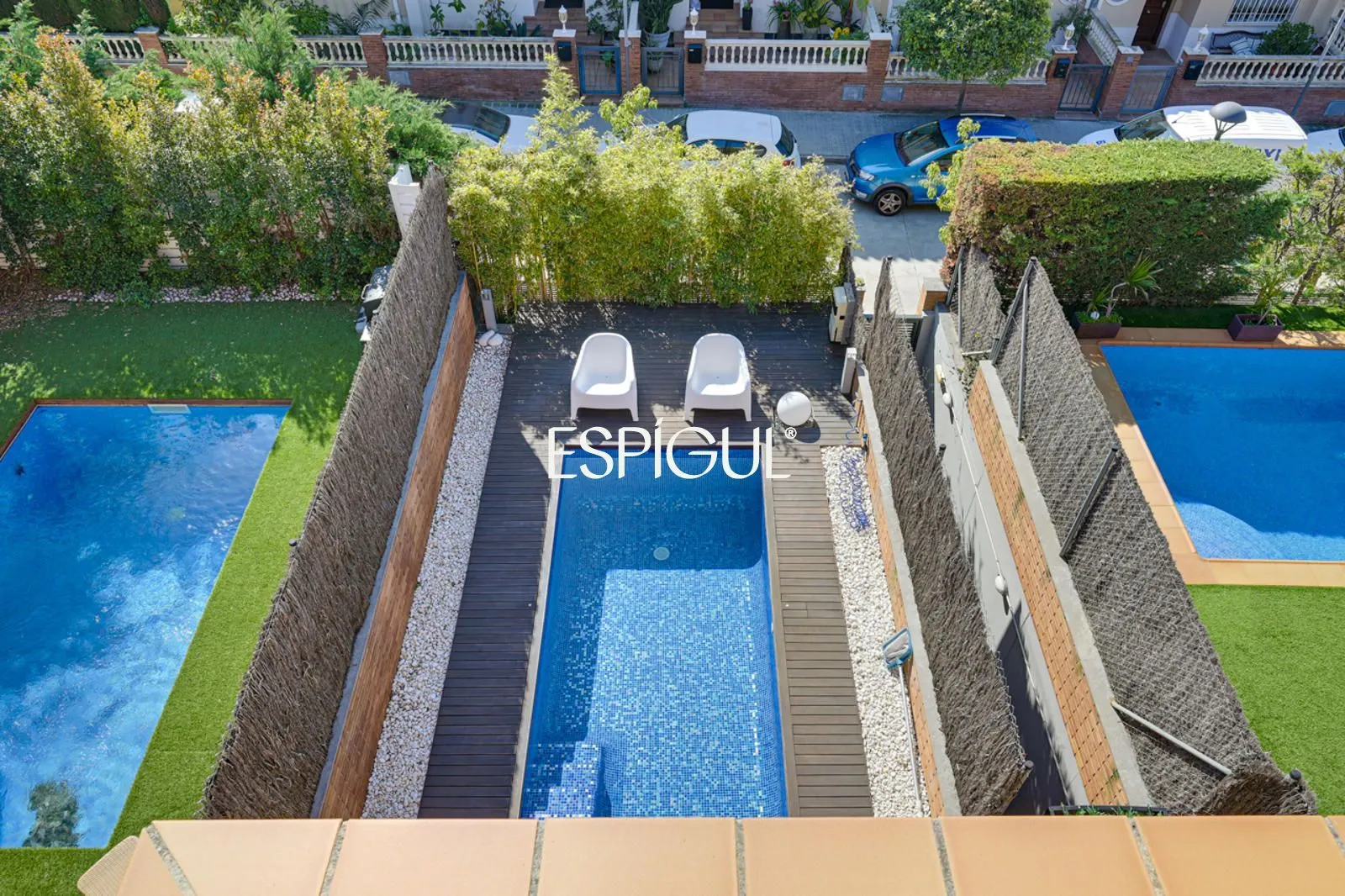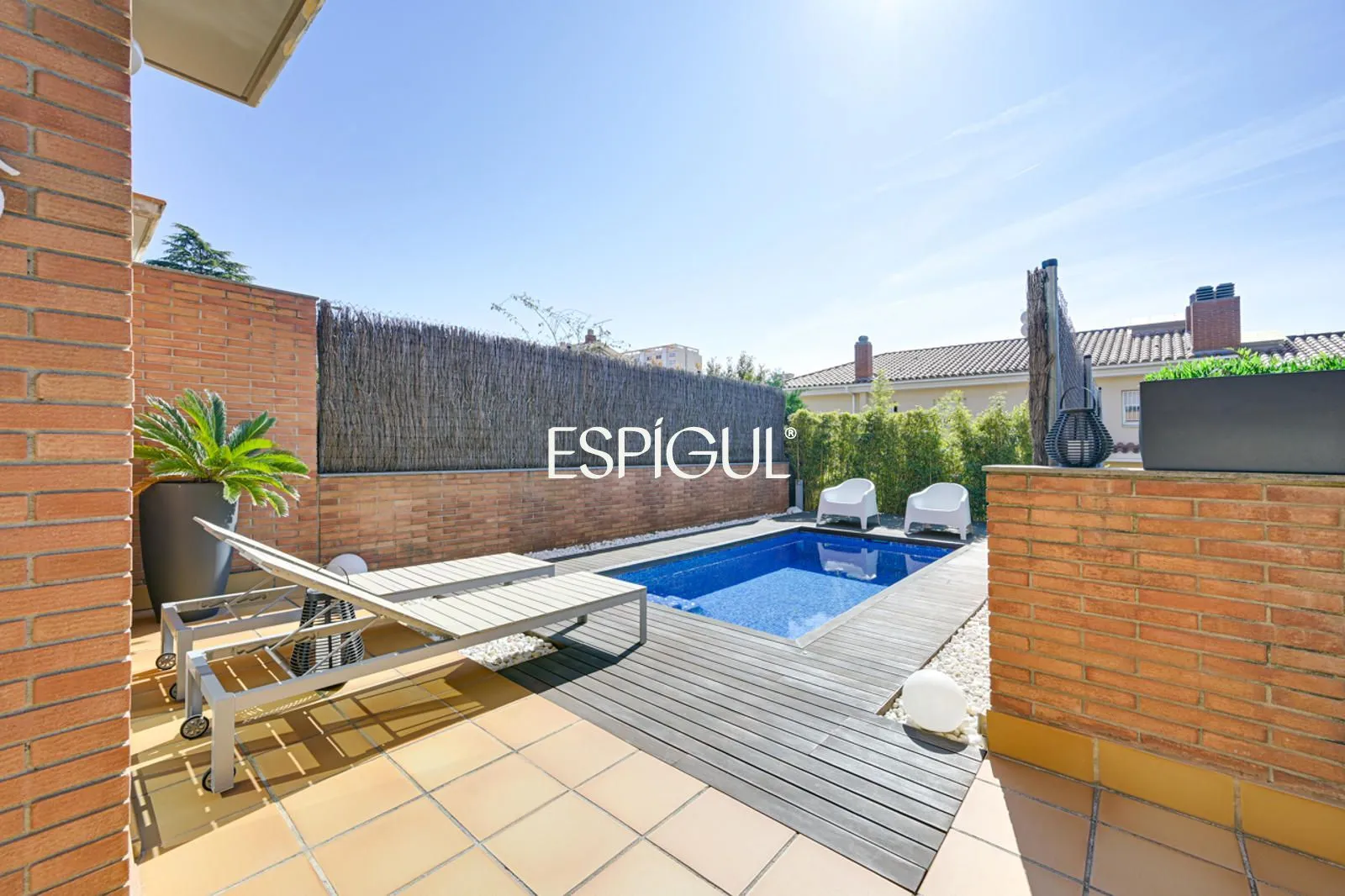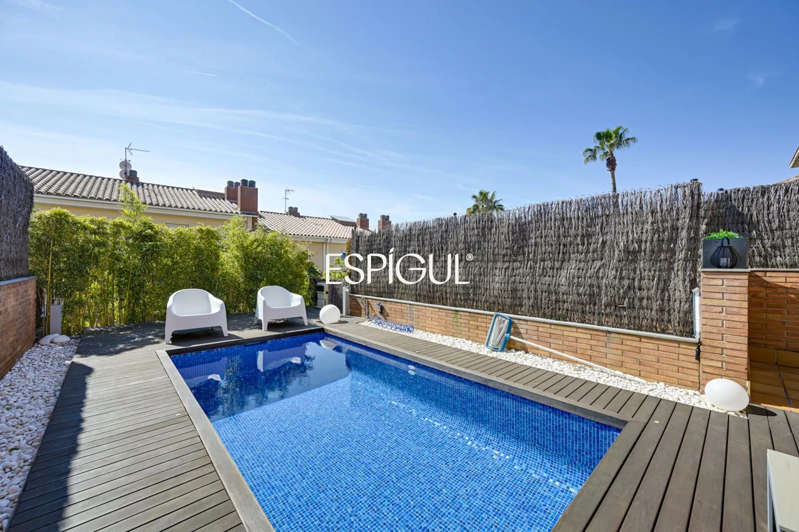 Снаружи дом предлагает настоящий частный оазис: элегантный бассейн с соленой водой и приятную лаунж-зону, идеально подходящую для наслаждения средиземноморским климатом круглый год, будь то встречи с друзьями или моменты семейного отдыха.